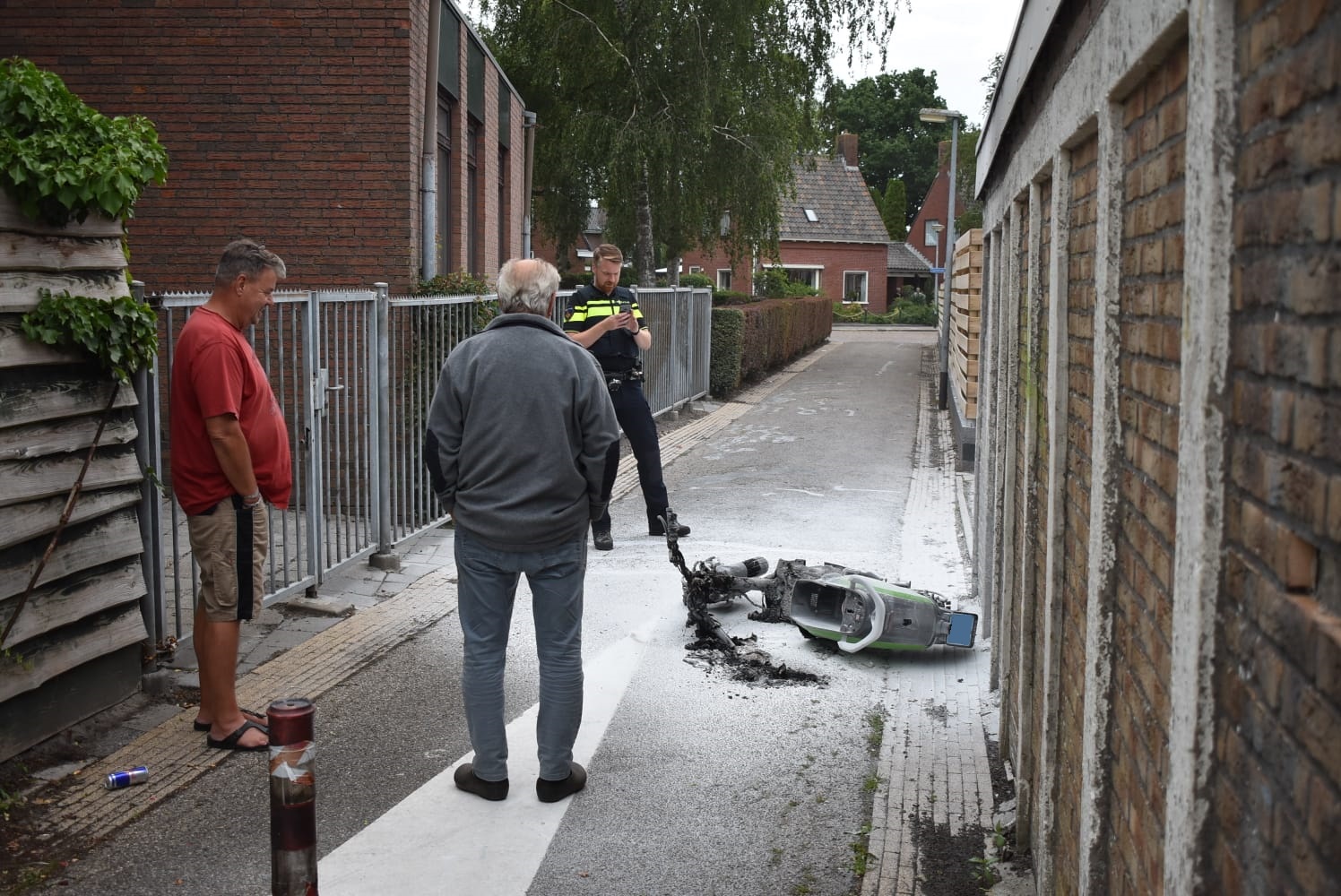 De brandweer heeft uiteindelijk alleen een nacontrole gedaan. “Een buurtbewoner heeft nadat de brand ontdekt werd gelijk een poederblusser gepakt en daarmee de brand bestreden. Toen de brandweer arriveerde waren de vlammen al verdwenen.” De politie heeft de scooter meegenomen. Buurtbewoners hebben de rommel opgeveegd waarmee de straat weer netjes was.