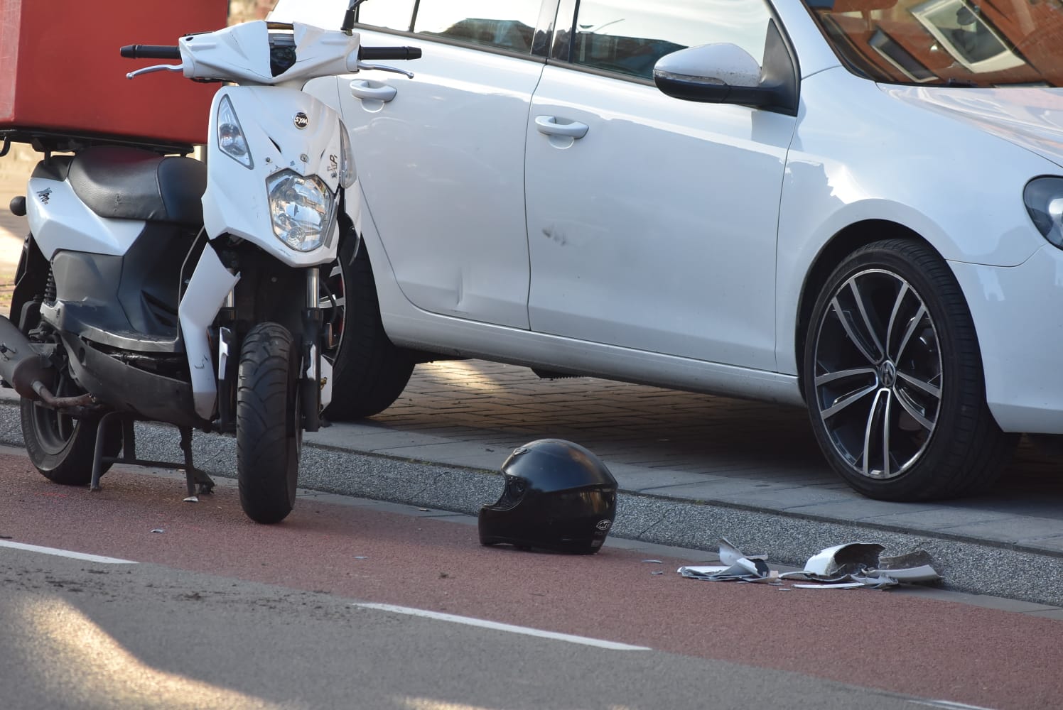 Zowel de personenauto als de scooter raakten bij het ongeluk beschadigd. Er wordt onderzoek gedaan naar de toedracht van het ongeluk.