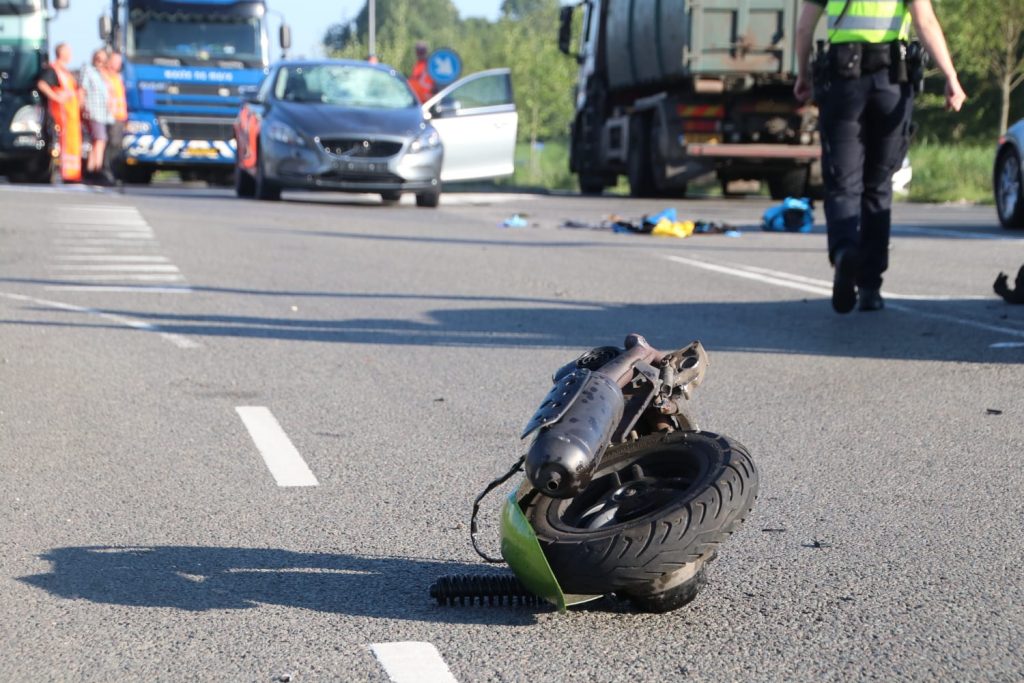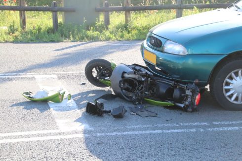 Het ongeluk gebeurde rond 07.30 uur op de kruising met de Winschoterweg. “Hoe het precies heeft kunnen gebeuren is onbekend”, vertelt Lameris. “Een scooterrijder en een automobilist kwamen met elkaar in botsing. De bestuurder van de scooter klapte daarbij op het voorruit van de auto. De scooter kwam tegen een tegemoetkomende auto tot stilstand. Door de harde klap brak het voertuig daarbij in tweeën.”