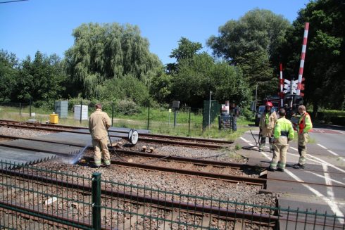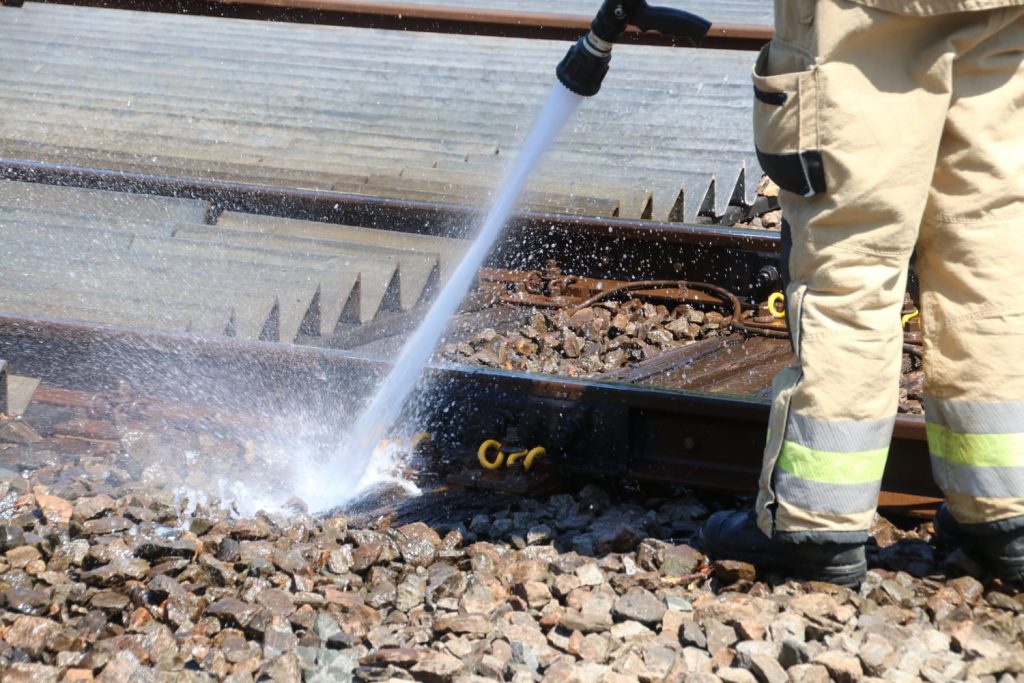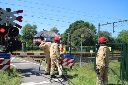 Bij aankomst bleek dat drie spoorbielzen aan het smeulen waren. “Brandweerlieden hebben de brand snel onder controle weten te brengen met een straal water. Met behulp van een warmtebeeldcamera werd gecontroleerd of het vuur daadwerkelijk onder controle was.” Vanwege de inzet van de hulpdiensten moesten treinen ter hoogte van de spoorwegovergang tijdelijk langzamer rijden. Inmiddels zijn de beperkingen weer voorbij.