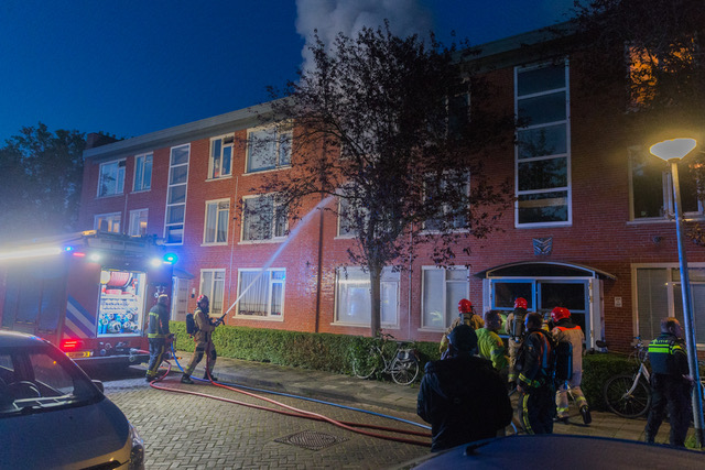 Volgens incidentfotograaf Mike Weening van Weening Fotografie woedt de brand in een portfiekflat. “Het gaat om een woning op de bovenste verdieping. De brandweer is direct een blussing vanaf de straatzijde gestart. De flat is ontruimd.” Rond 23.05 uur was het vuur onder controle. Volgens Weening is kort na het uitbreken van de brand een man aangehouden. “Agenten hebben zojuist een man in de boeien geslagen. Deze persoon is even later in een ambulance onder politiebegeleiding naar het ziekenhuis gebracht. Daarnaast staat er ook nog een andere ambulance en is ook het MMT, het Mobiel Medisch Team, in de straat aanwezig.”