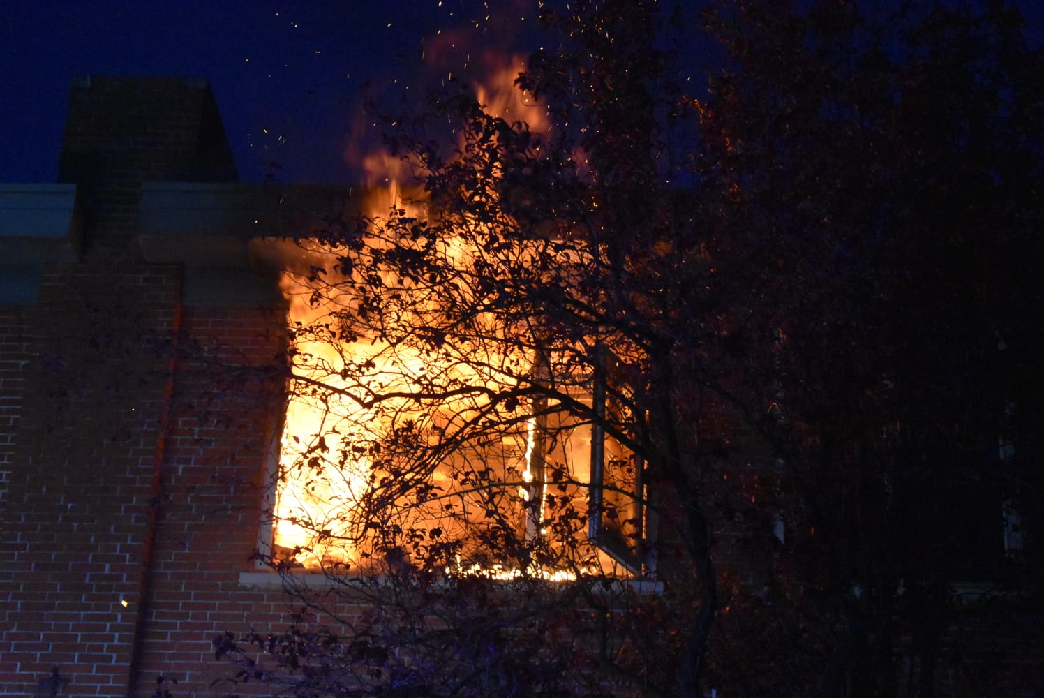 Om 22.50 uur slaan de vlammen uit de woning. Foto: Mike Weening – Weening Fotografie