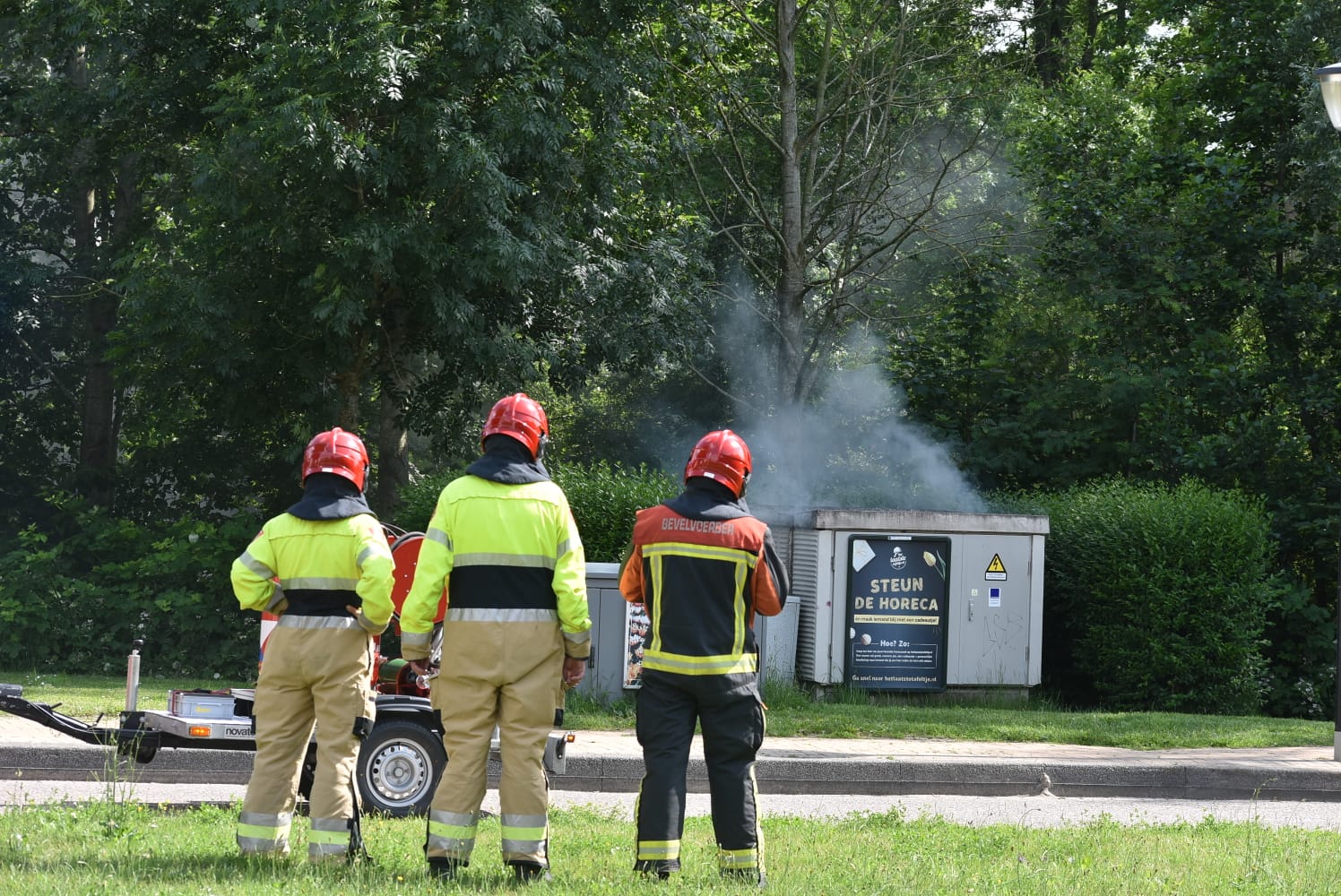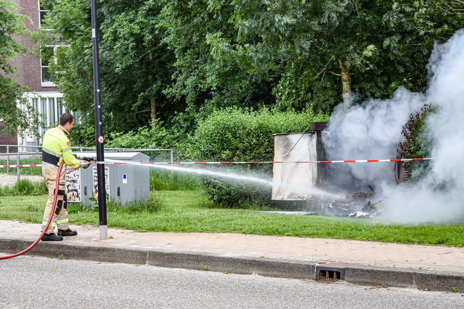Rond 17.15 uur laat Weening weten dat de stroomkast volledig verwoest is. “Van de kast is niets meer over. Alleen de betonnen muurtjes staan nog overeind. De brandweerlieden houden nog altijd de situatie in de gaten. Ze zijn in gesprek met energiebedrijf Enexis hoe de situatie aangepakt moet worden.” Brandweerwoordvoerder Edwin Oosterheerd liet eerder weten dat er niet geblust wordt vanwege de nodige risico’s. Toen de kast nog enkel rookte vertelde Oosterheerd: “Als je nu een blussing start wordt de schade vele malen groter.” Rond 18.00 uur wordt besloten om toch een blussing te doen. “Een brandweerman heeft de restanten afgeblust”, vertelt Weening. Kort daarna werd de afzetting opgeheven en keerde de brandweer weer terug.
