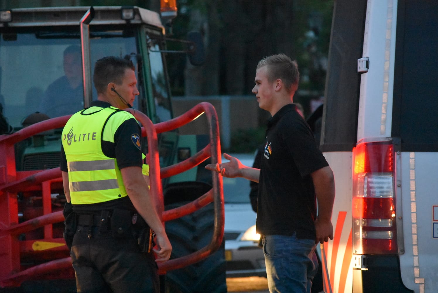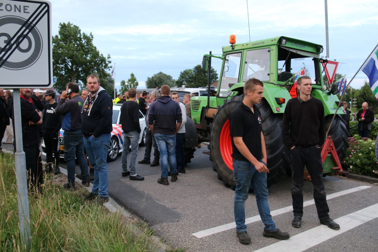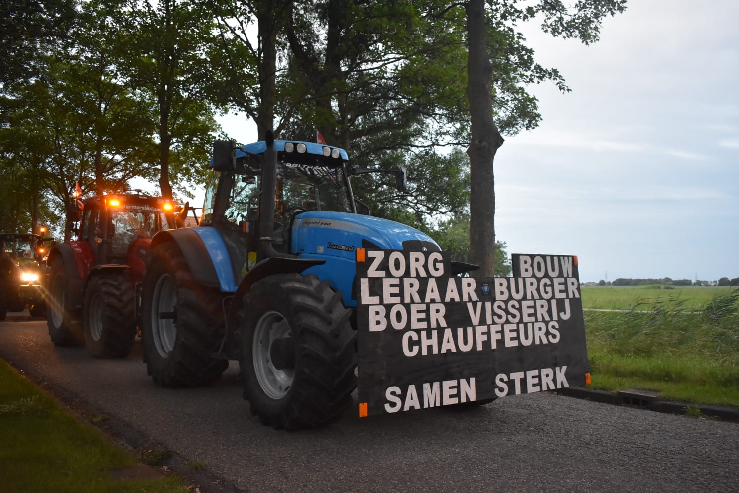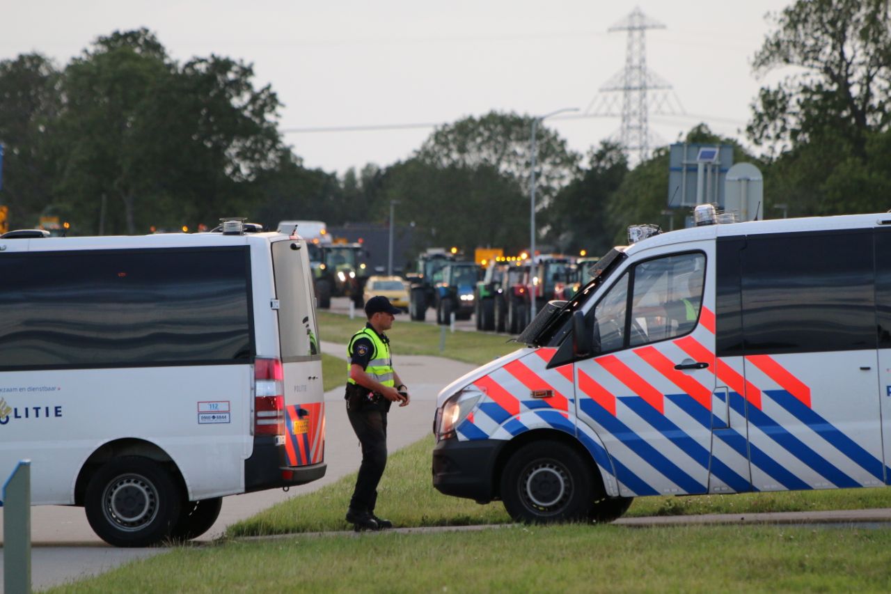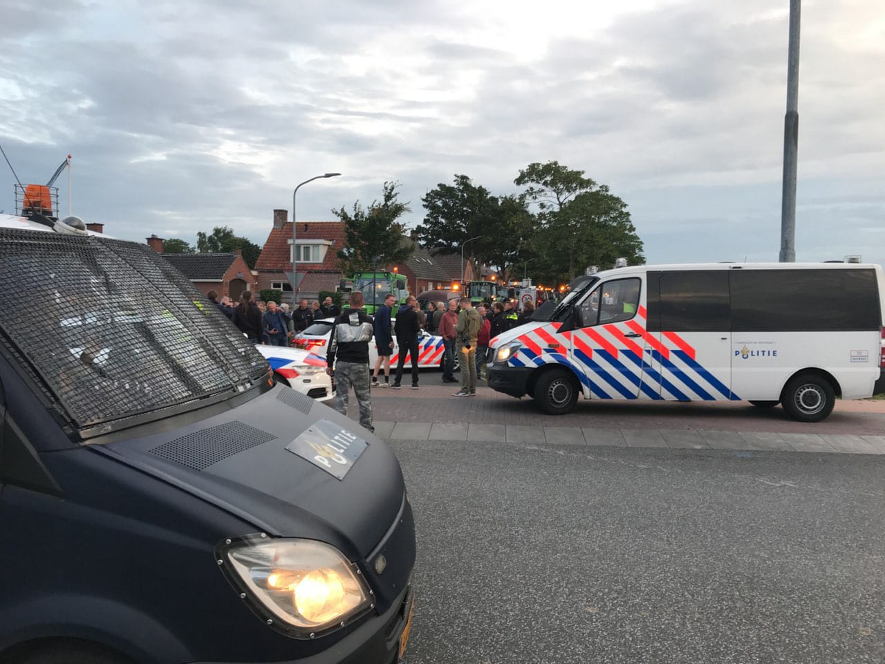 “De voorzitter van de Veiligheidsregio geeft toestemming voor een tour door de stad”, klinkt de stem van een politieagent door een megafoon. Op dat moment is het rond 22.30 uur. Zo’n tachtig boeren staan dan al een uur stil op de Wierumerschouwsterweg in Adorp. Op de kruising met de Provincialeweg worden ze geblokkeerd door de politie. “Er is een route uitgezet. Deze moet gevolgd worden. Jullie mogen niet binnen de Diepenring komen”, vervolgt de stem.