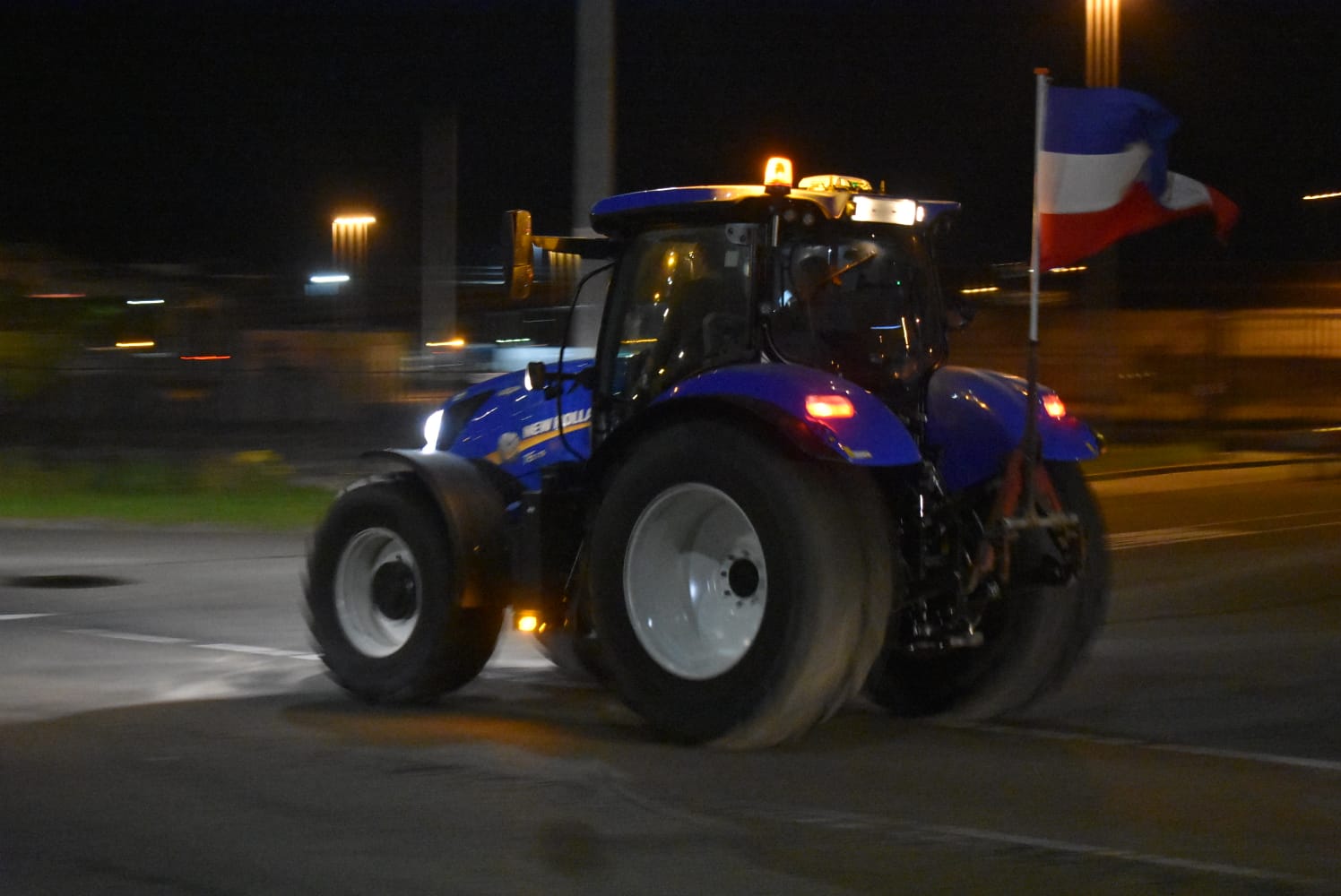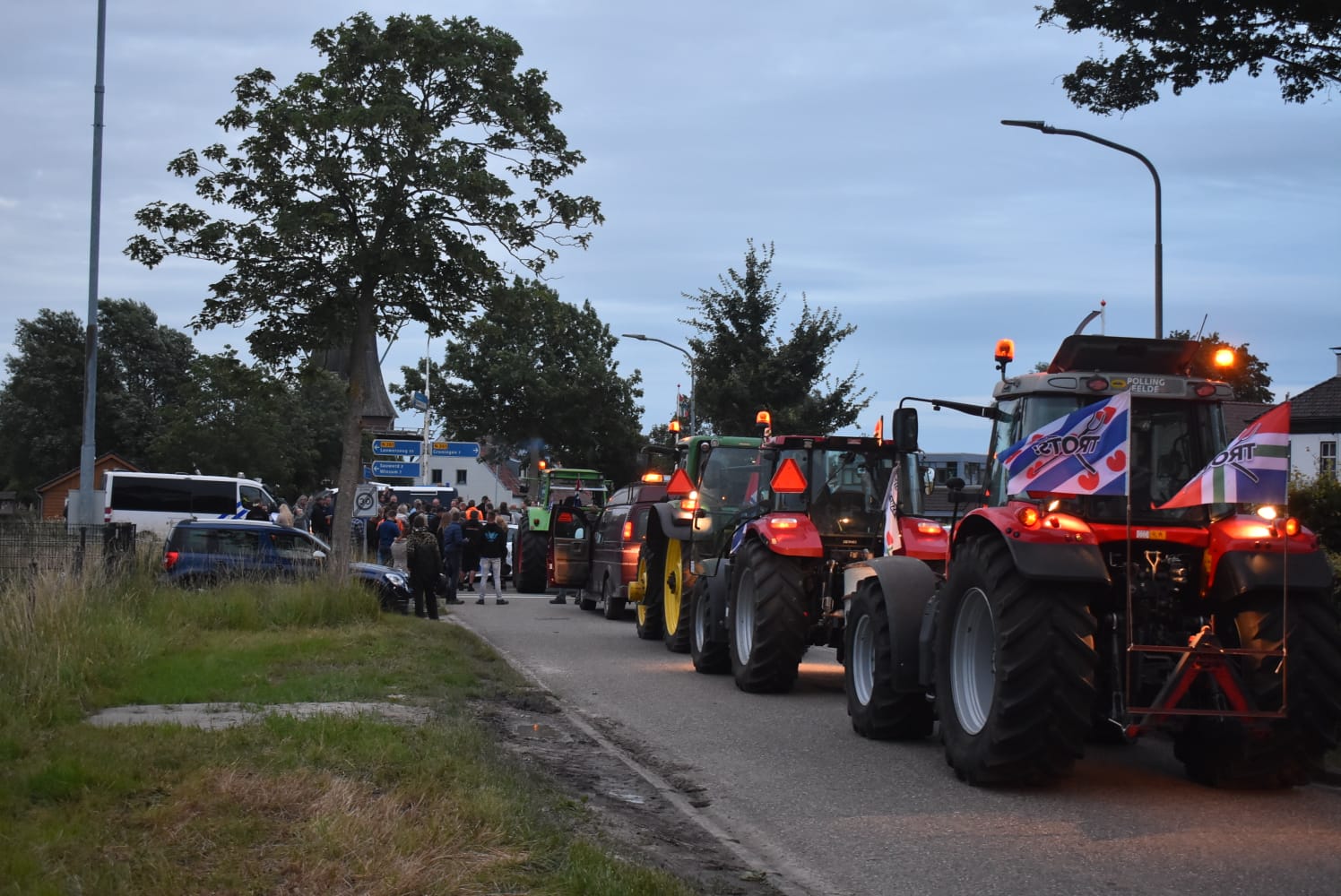 Onder begeleiding van de politie vertrekken de boeren rond 22.30 uur vanuit Adorp richting Stad