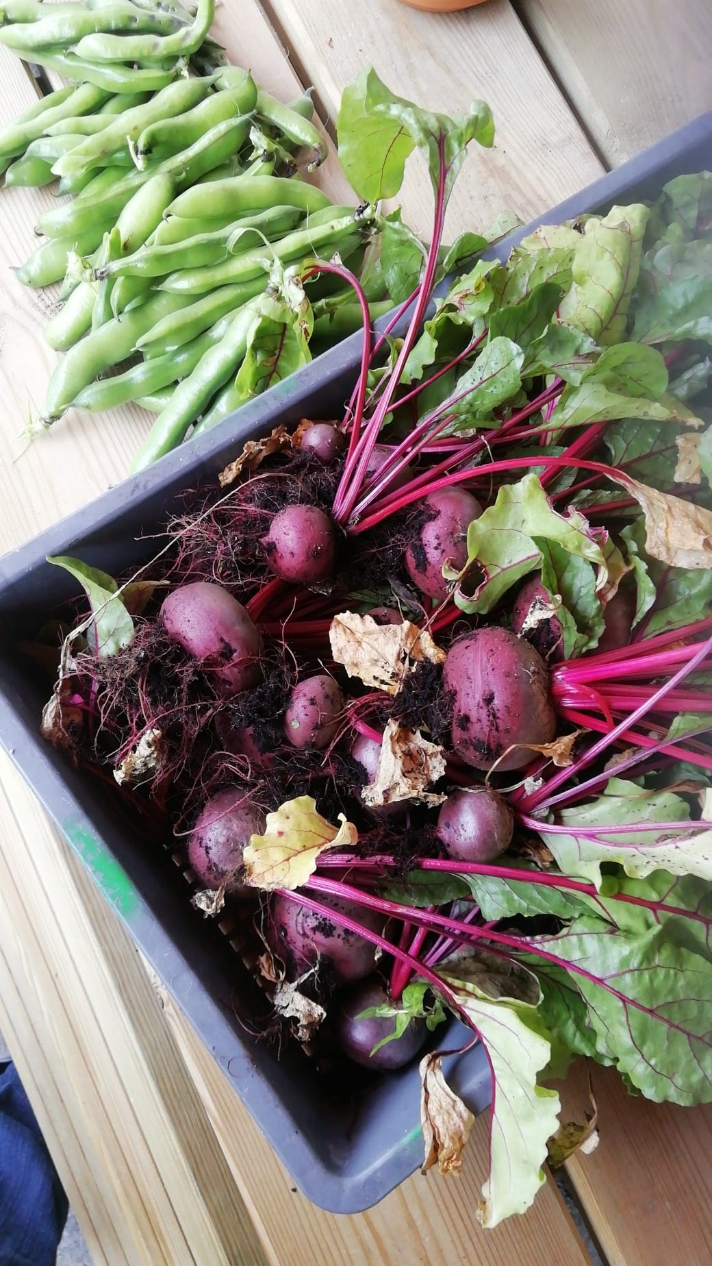 In de bakken staan onder andere tomaten, aardbeien, sla en kruiden. “Eerder vanmiddag hebben we de tuinbonen en bieten geoogst. Mijn man is op dit moment bezig in de keuken om bietensoep te maken.” Meijer geeft daarmee aan dat een deel van de producten ook gebruikt wordt in het café. “Jazeker, mocht je hier straks langskomen dan hebben we overheerlijke bietensoep op het menu staan.”