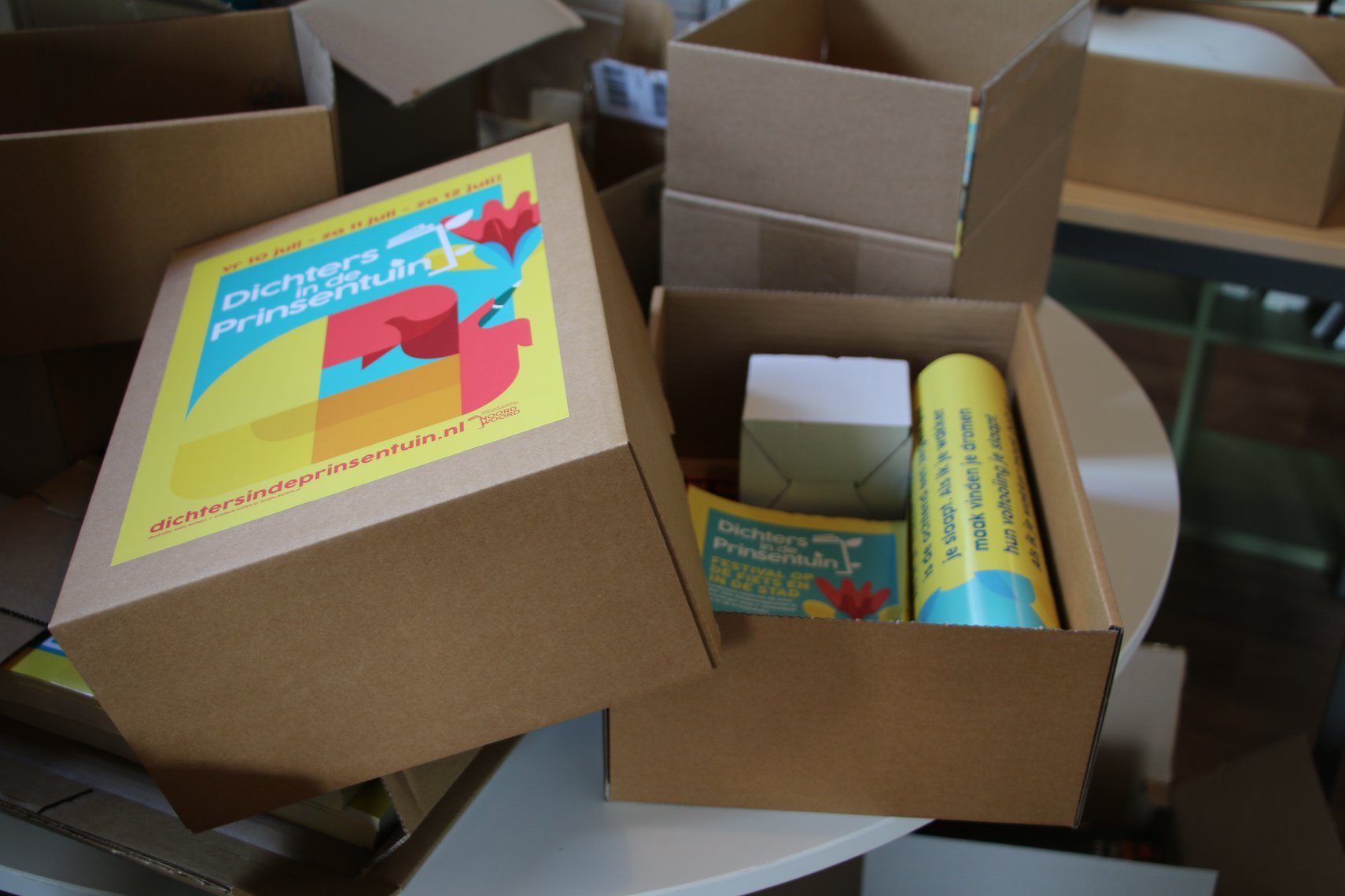 Dichters in de Prinsentuin 2020 bestaat onder meer uit 250 dozen gevuld met unieke Dichters in de Prinsentuin-producten. En een livestream-unboxing party-festivalopening.