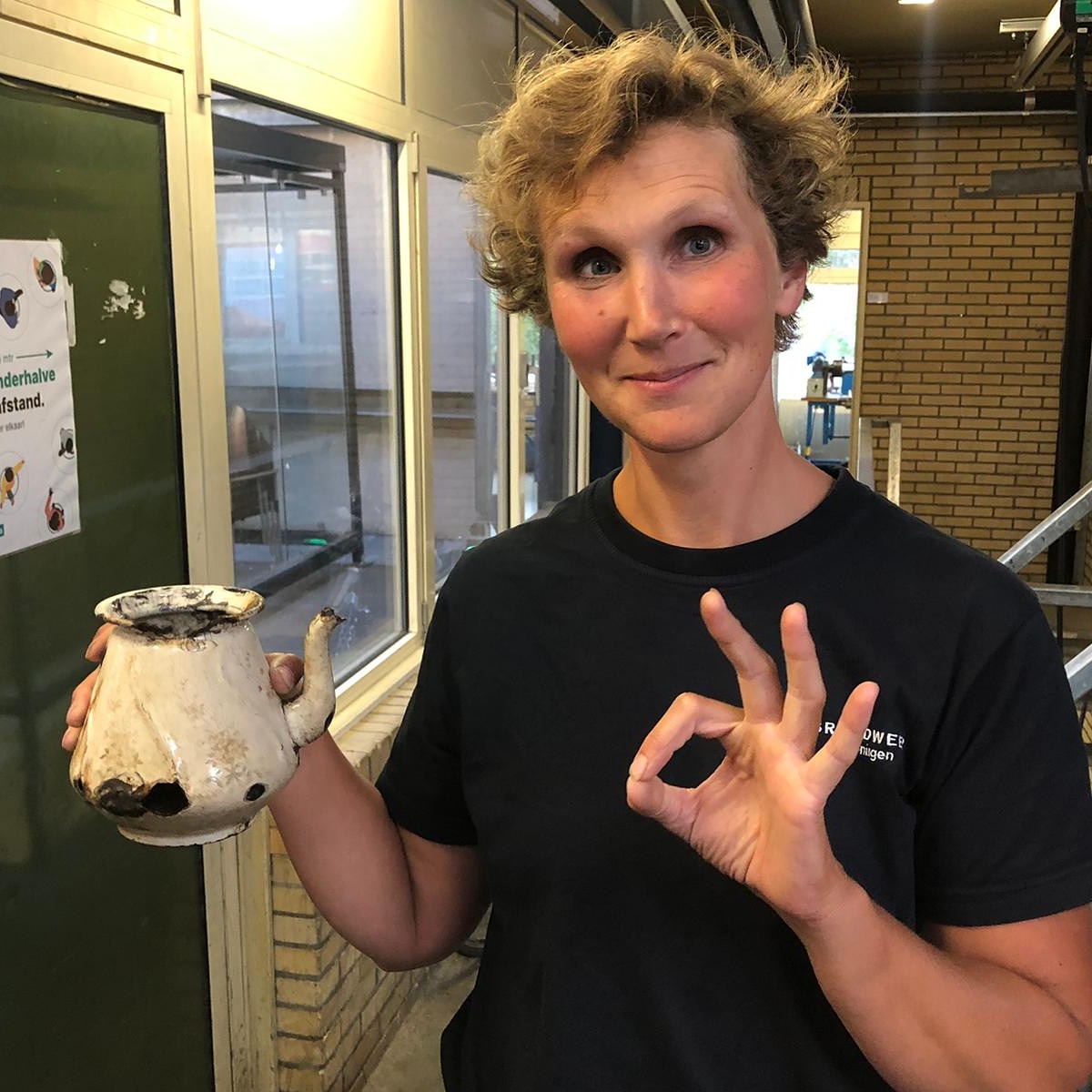Het duikteam van de Groninger brandweer viste dinsdag iets bijzonders op tijdens een oefening in de stad. Het gaat om een oude theepot.