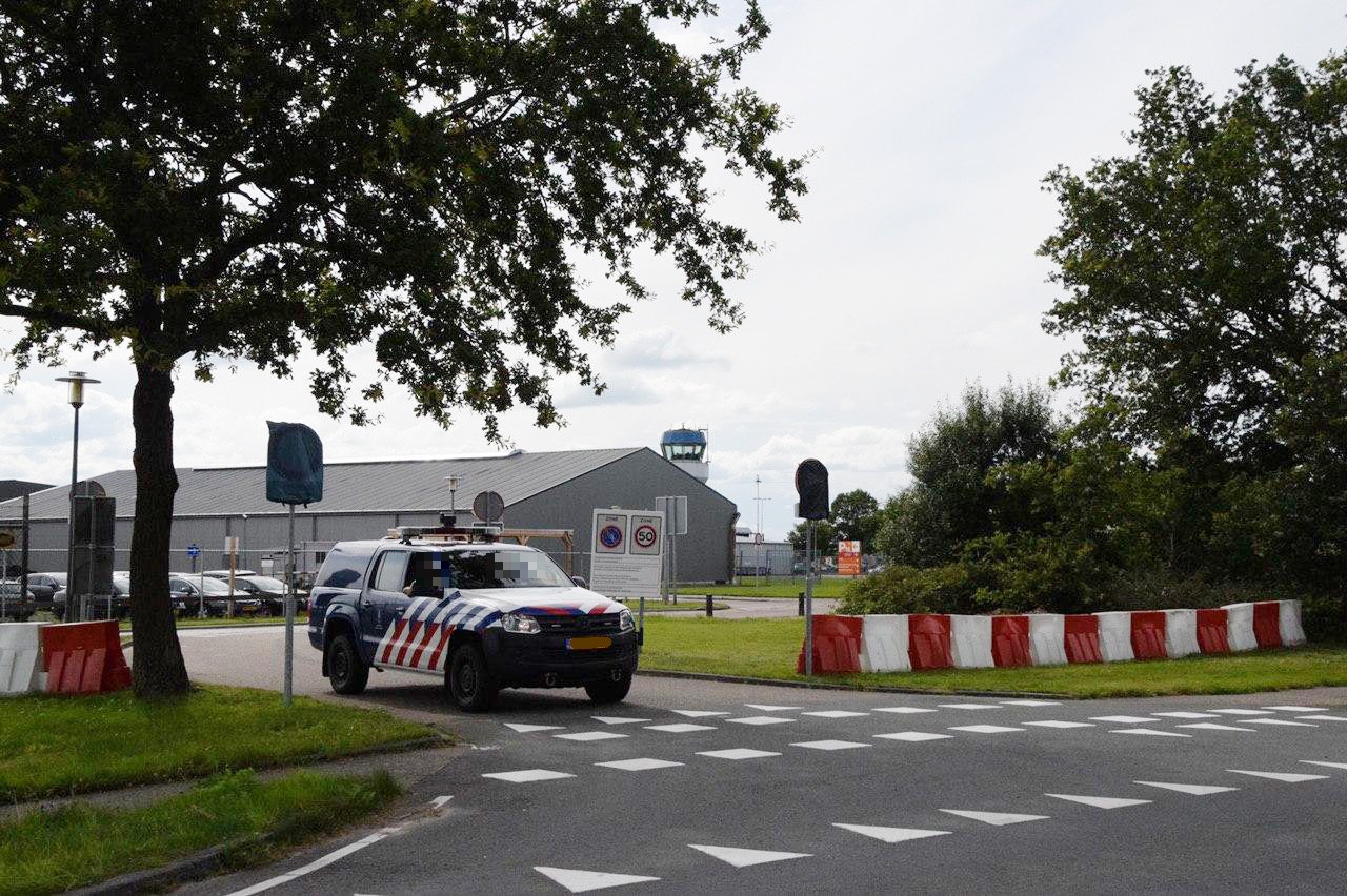 De voertuigen stonden zo opgesteld dat de agenten het vliegveld ieder moment konden afsluiten om daarmee te voorkomen dat tractoren op het terrein konden komen. De boeren voeren woensdag actie vanwege de voermaatregel van minister Carola Schouten (ChristenUnie) van Landbouw. De minister wil de hoeveelheid eiwitten in het veevoer vanaf september af laten nemen om daarmee de stikstofuitstoot te verlagen. De boeren zien dit niet zitten omdat het volgens hen de gezondheid van de dieren schaadt.