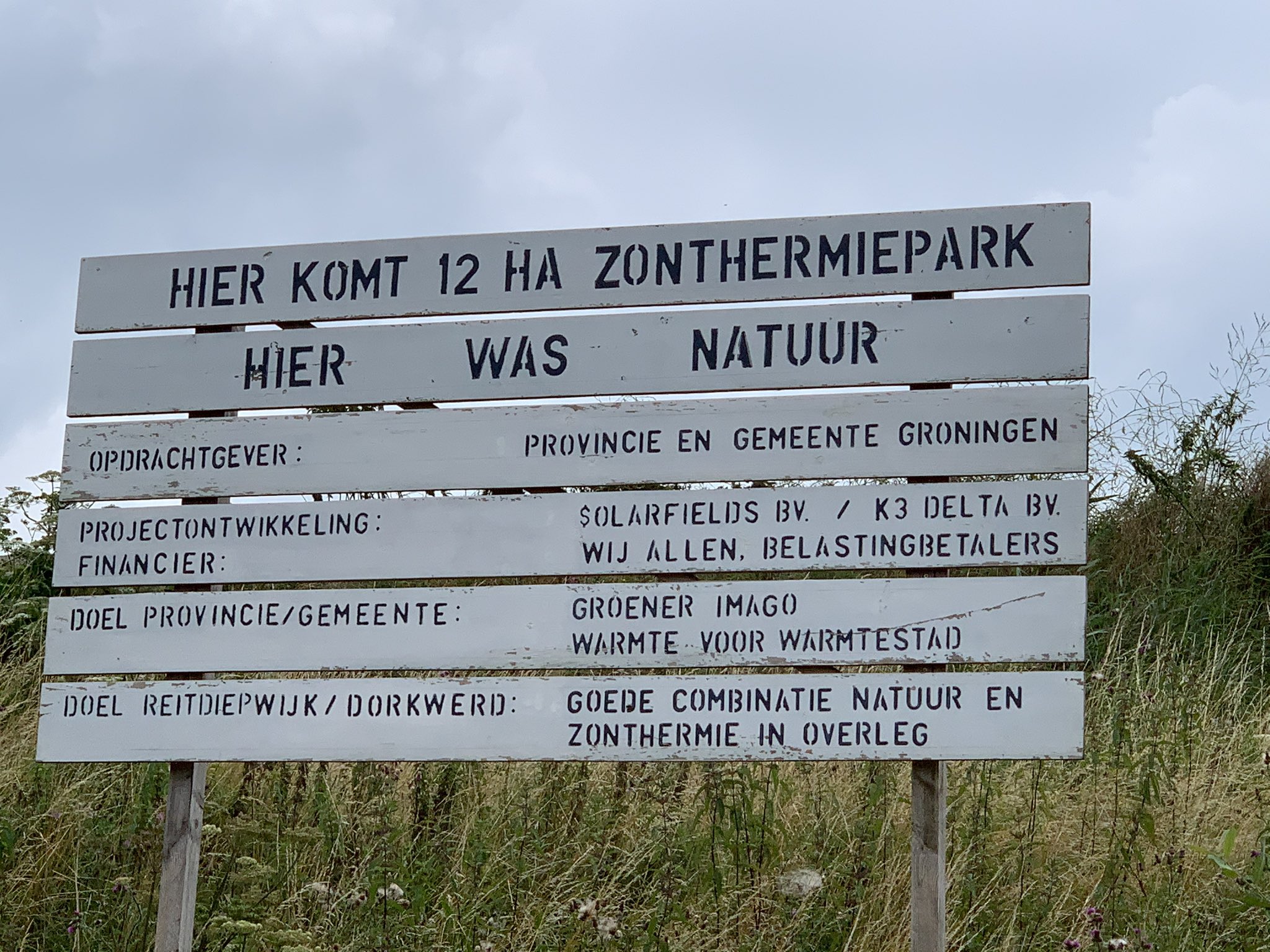 Richard Jong-A-Pin puzzelt met dit bord nabij de Reitdiepwijk en Dorkwerd. Is het serieus, cynisch of sarcastisch? Of alle drie?