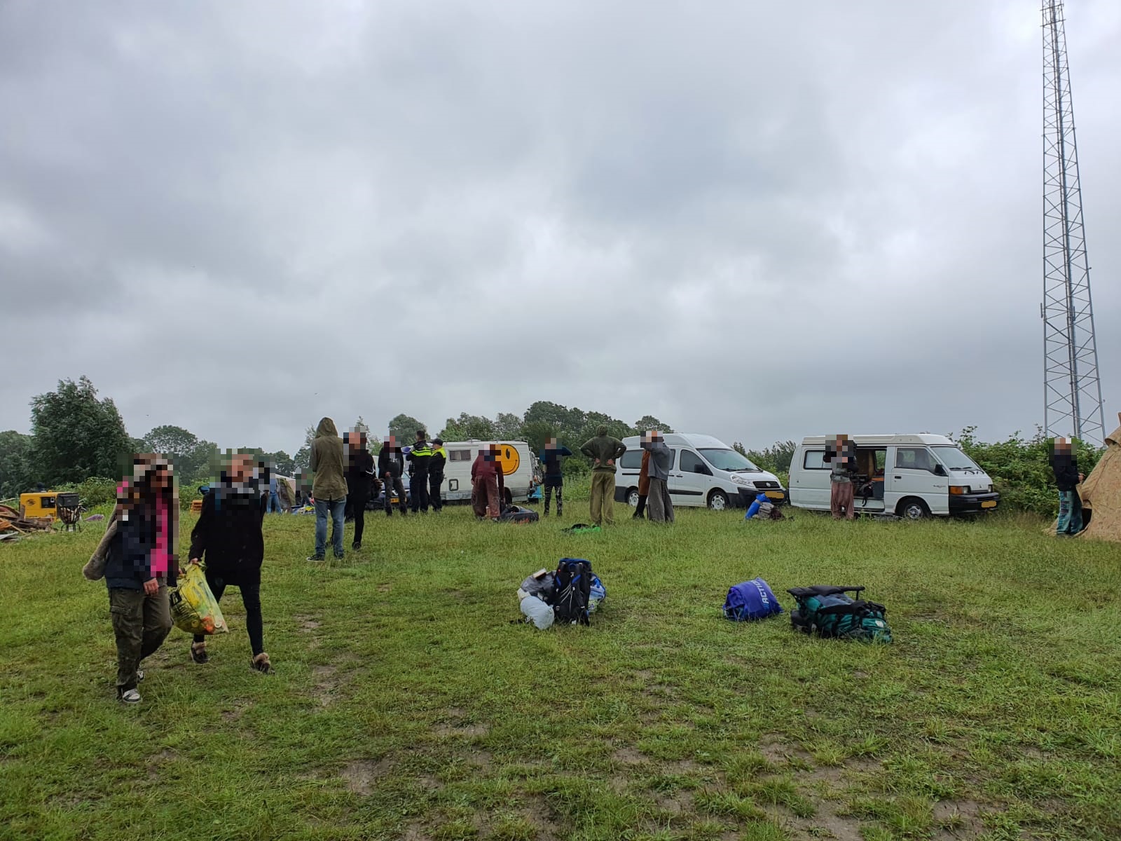 Het gaat om zo’n vijftig mensen die op een terrein nabij de zendmast bijeen waren gekomen. “Het gaat echt om een feestje”, vertelt Wind. “Er staan wat campers en busjes en ook is er een mobiel toilet geplaatst.”
