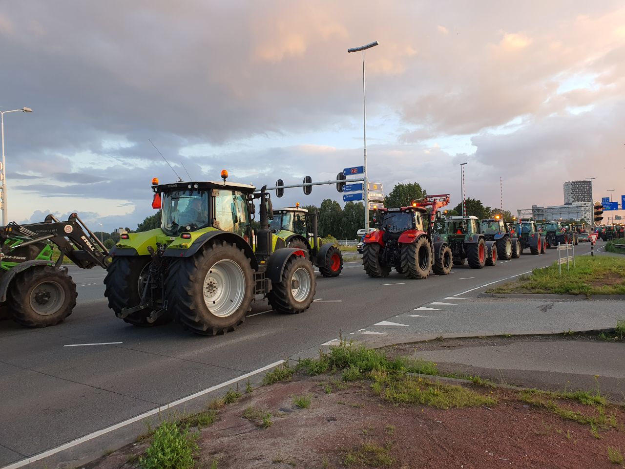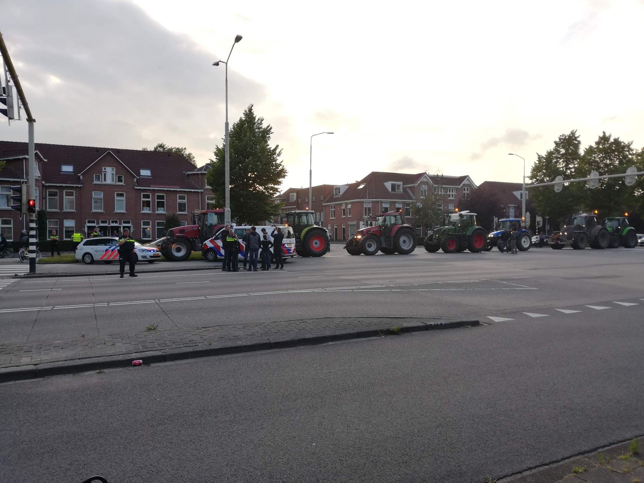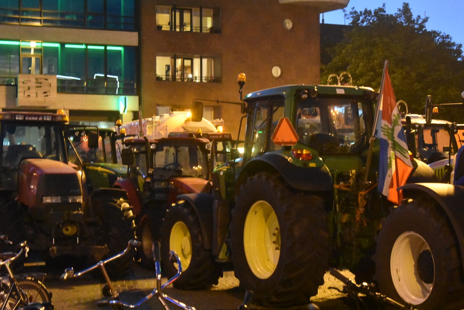 Rond 22.00 uur rijden tractoren via het Julianaplein de stad in