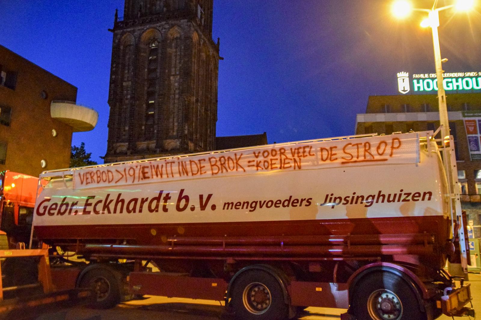 Uiteindelijk lukte het toch om met zo’n dertig trekkers op de Grote Markt te komen. “We zijn rond 19.45 uur uit het oosten van de provincie vertrokken”, vertelt een agrariër. “Het ging eigenlijk vrij makkelijk. Door de politie werden we de ringweg opgeleid maar op een gegeven moment konden we er af komen en konden we vrij eenvoudig naar de Grote Markt rijden.” De boeren laten weten dat om 23.30 uur de stemming in de Tweede Kamer is over de ‘voermaatregel’. “Tot die tijd proberen we hier te blijven als we de medewerking krijgen van de politie. Tot nu toe gaat dat goed.”