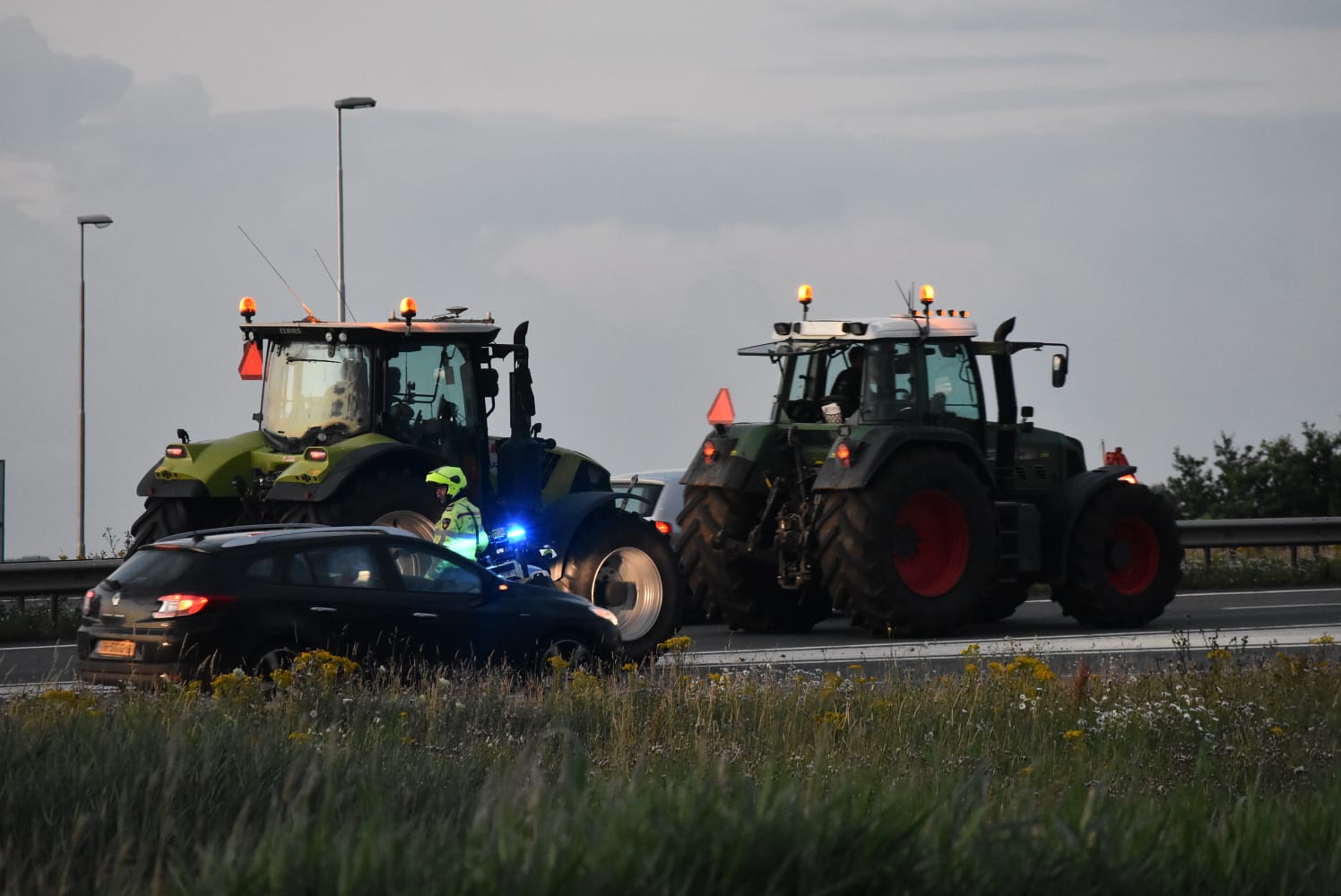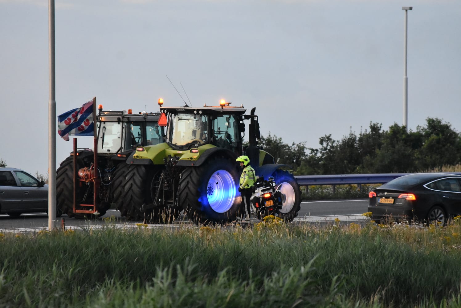 Op de Bedumerweg werden trekkers geblokkeerd door politiewagens. Foto: Quinten Dengerink
