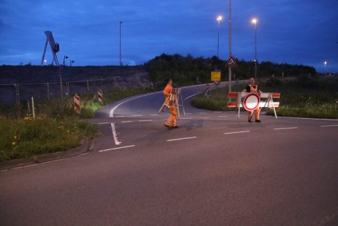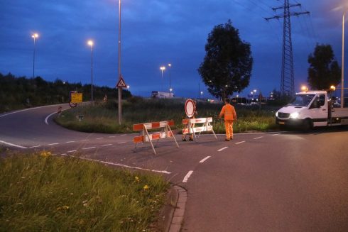 “Precies om 22.00 uur werden er hekken geplaatst die het verkeer beletten om de oprit te gebruiken”, vertelt fotograaf Joey Lameris van 112groningen.nl. “Vanavond is de tweede avond dat ze de oprit afsluiten.” Tot volgende week vrijdag, met uitzondering van komende zaterdag en zondag is de oprit iedere nacht van 22.00 tot 06.00 uur gestremd.