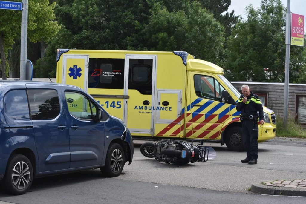 Het ongeluk gebeurde rond 14.10 uur ter hoogte van de kruising met het Hoendiep. “Het gaat om een aanrijding tussen een scooter en een personenauto”, vertelt Weening. “Hoe het precies heeft kunnen gebeuren is onbekend. Het lijkt erop dat de scooter tegen de flank van de auto is gebotst. De bestuurder kwam daarbij ten val.” Hulpdiensten waren snel ter plaatse. “Ambulanceverpleegkundigen hebben het slachtoffer behandeld, politieagenten hebben het overige verkeer in goede banen geleid.”