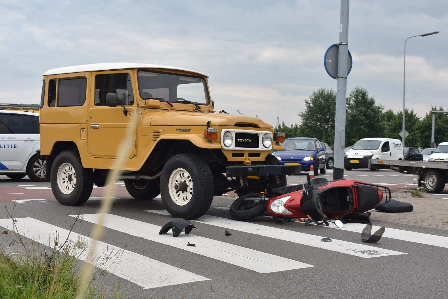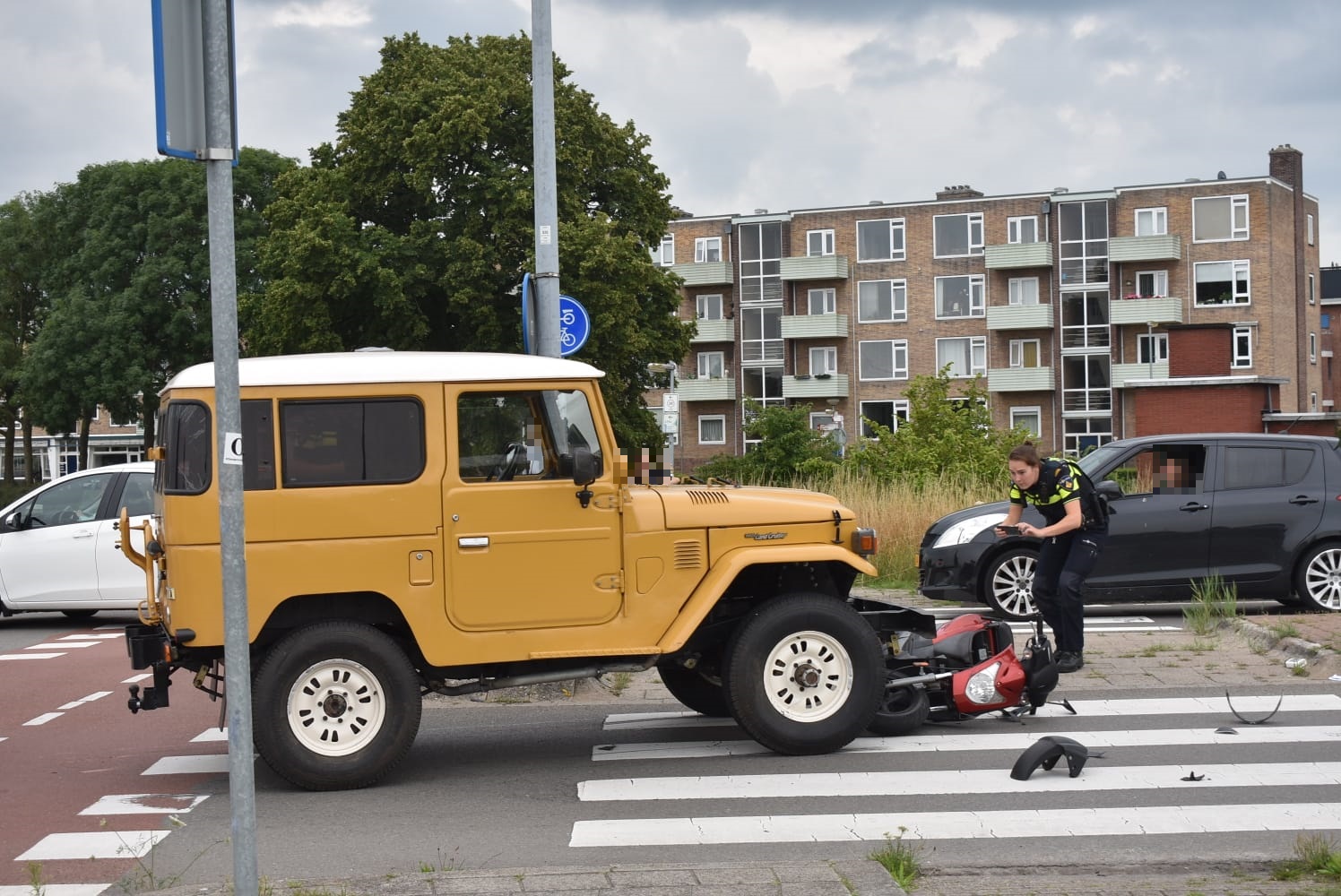 Volgens Mike Weening van Weening Fotografie hoefde de vrouw niet mee naar het ziekenhuis. “Het overige verkeer ondervond wel behoorlijke hinder. Door de aanrijding kon er niet gebruik worden gemaakt van de omleidingsroute als de brug open gaat. Hierdoor stond er op een gegeven moment een flinke file.” De politie heeft onderzoek gedaan naar de toedracht. Rond 17.30 uur was de weg weer begaanbaar.