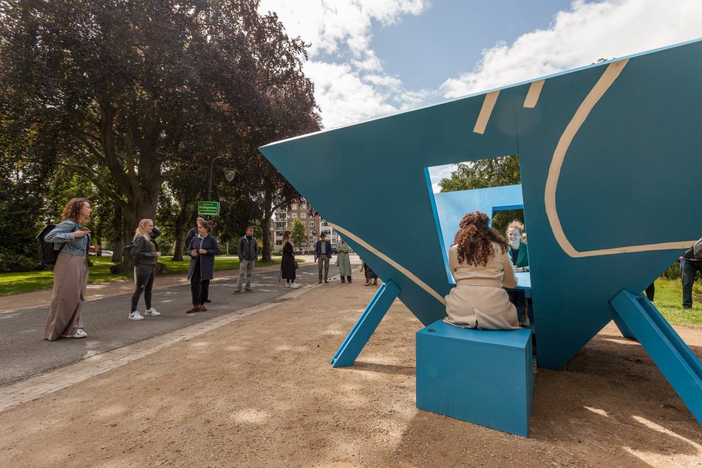 Eva Koopmans brengt een Ode aan de spontane ontmoeting. Haar installatie herinnert aan de kracht van spontane ontmoetingen met onbekenden en laat je dit ook ervaren, op gepaste afstand.