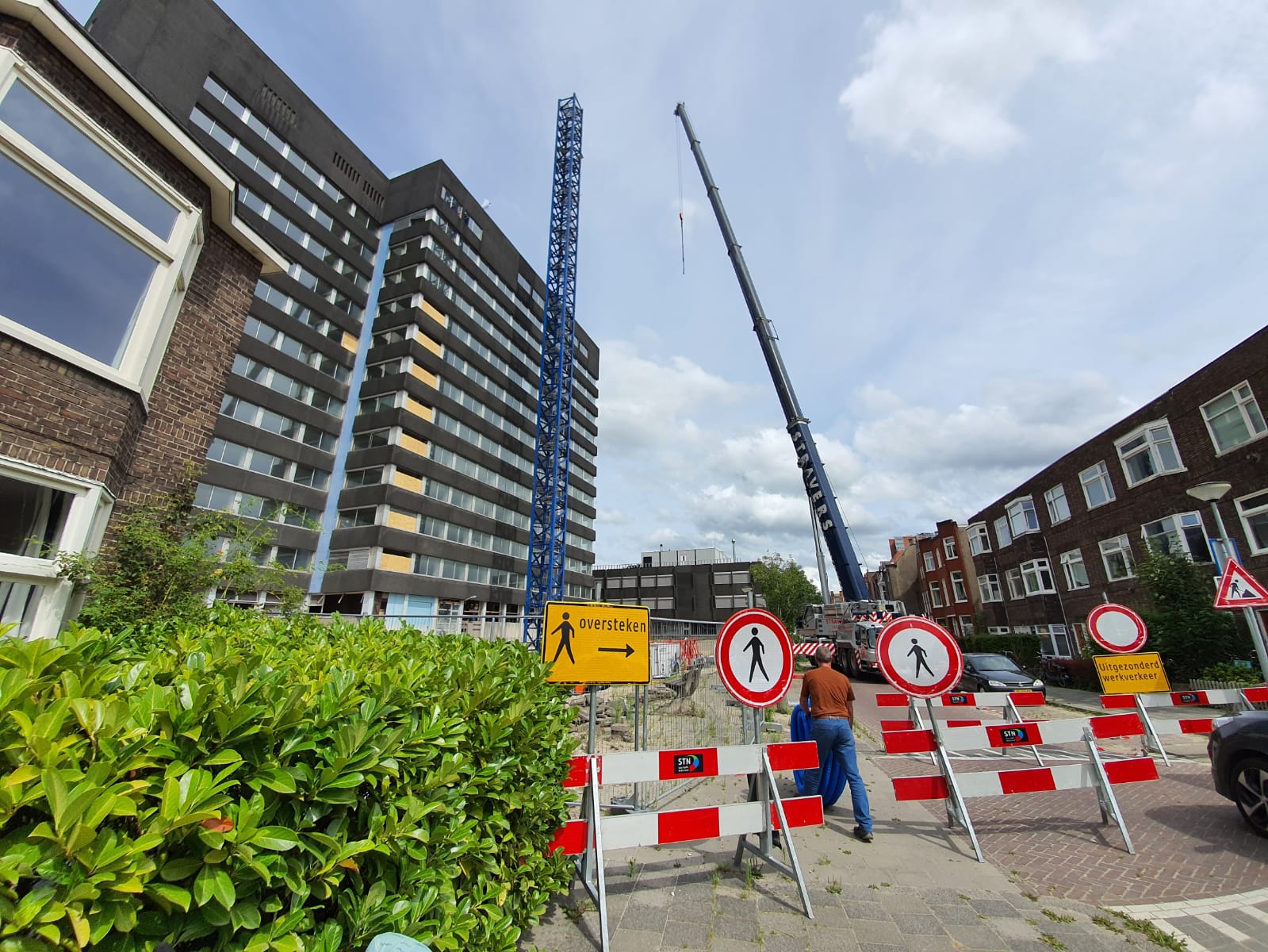 “Het kan ook niemand ontgaan dat de verbouwing begonnen is”, vertelt fotograaf Patrick Wind. “Naast het gebouw is men begonnen met het opbouwen van een grote torenkraan. Door deze werkzaamheden is de Witte de Withstraat afgesloten.” De werkzaamheden duren tot de tweede helft van volgend jaar. De verwachting is dan dat de eerste bewoners het complex kunnen gaan bewonen.