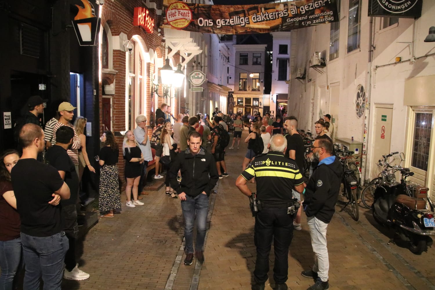 In de horecagelegenheid zijn zaterdagavond even na 21.00 uur zo’n zo’n twintig mensen binnen. “We vinden het belachelijk dat Het Feest dicht moet”, laat een gast weten. “Ze houden zich al weken aan de maatregelen. Ik ben hier om de eigenaar en medewerkers te supporten.” Kort nadat het café open ging kwam een medewerker van de gemeente Groningen langs. “Die heeft de brief afgegeven waarin staat dat de zaak dicht moet”, vertelt verslaggever Wouter Holsappel. “Als ze niet dicht gaan dan komen er grote problemen waarschuwde deze man.”