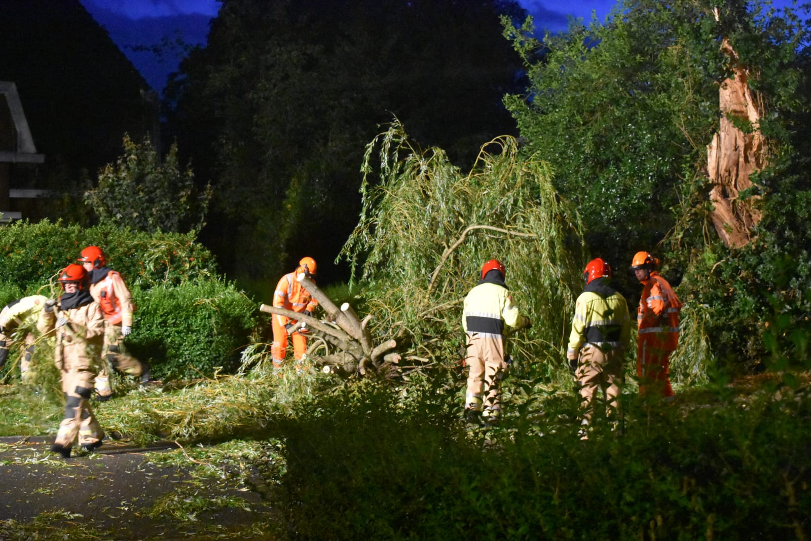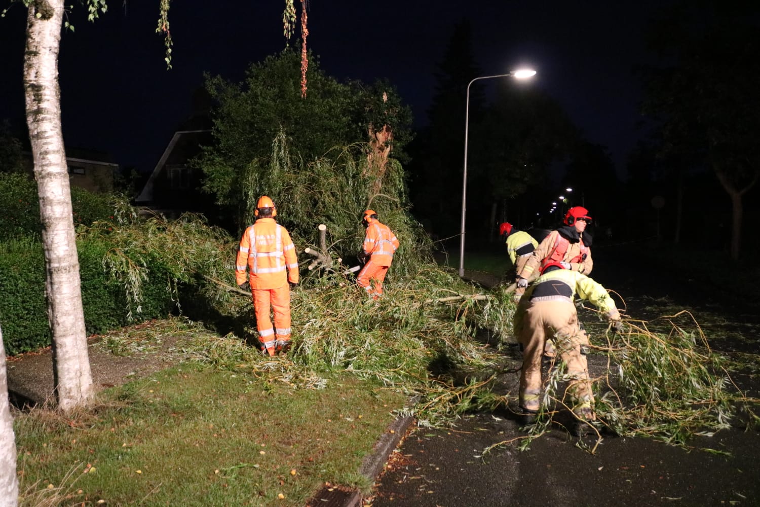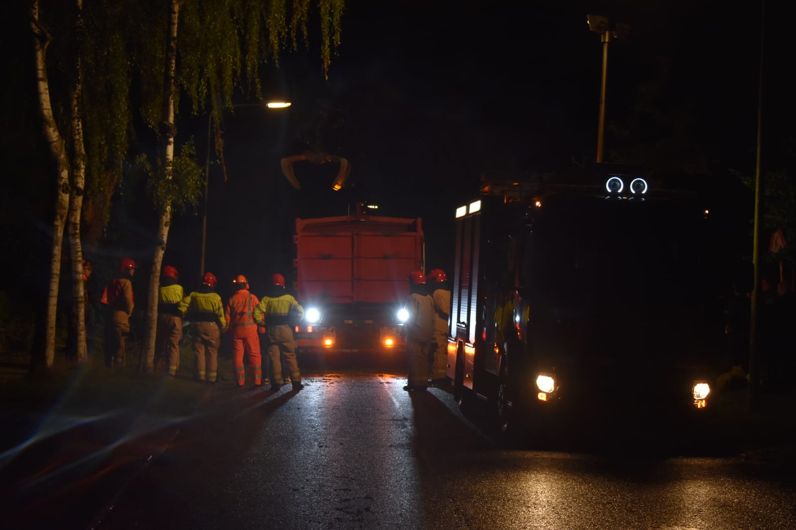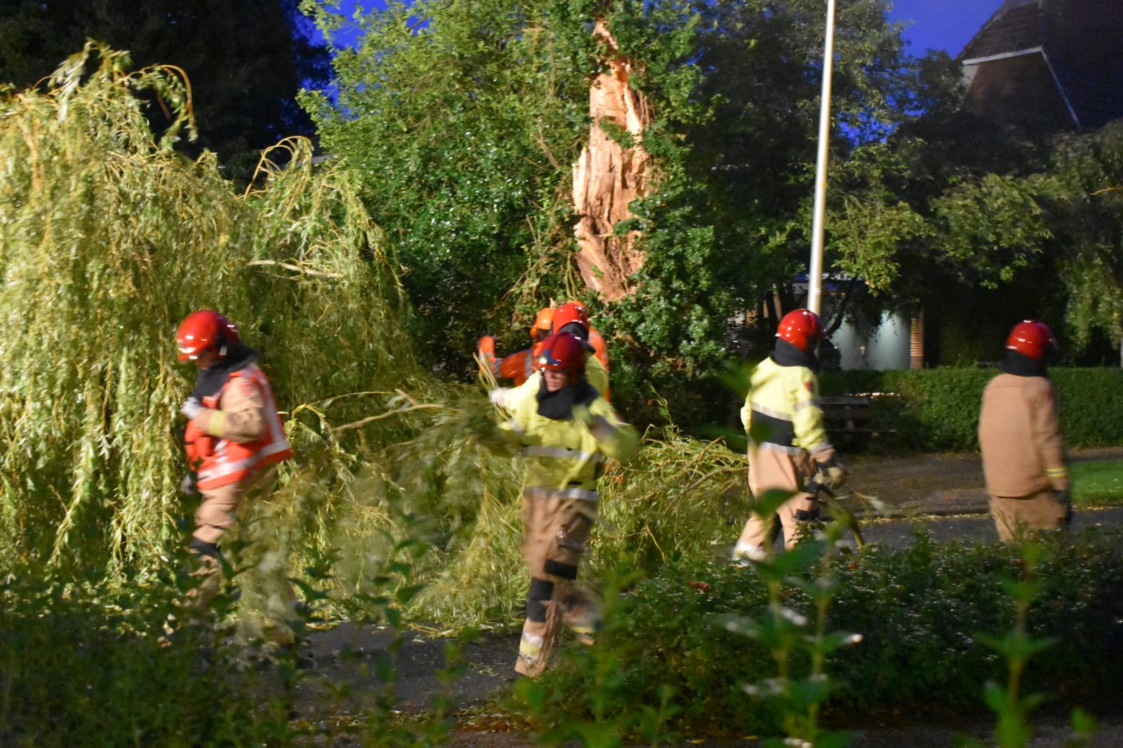De melding van een stormschade kwam rond 21.00 uur binnen waarop de Harense brandweer uitrukte met een tankautospuit. “Een stuk van de stam staat nog, de rest is omgewaaid”, vertelt incidentfotograaf Mike Weening. “De boom blokkeert het voetpad en een gedeelte van de weg. Brandweerlieden hebben direct de kettingzaag er bij gepakt en hebben de boom in mootjes gezaagd. Toen ze bijna klaar waren kwam ook de Milieudienst van de gemeente Groningen ter plaatse. Zij hebben de restanten ingeladen en meegenomen.”