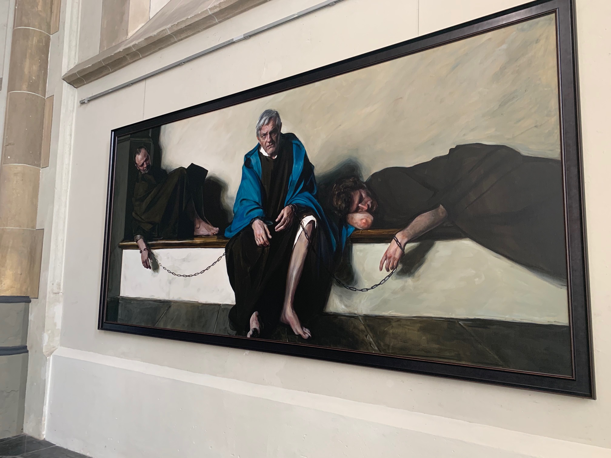 De klus die in 2017 begon voor de Stadse schilder Egbert Modderman (30) is halverwege. In de Martinikerk zijn nu vier werken van de barmhartigheid te bezichtigen.