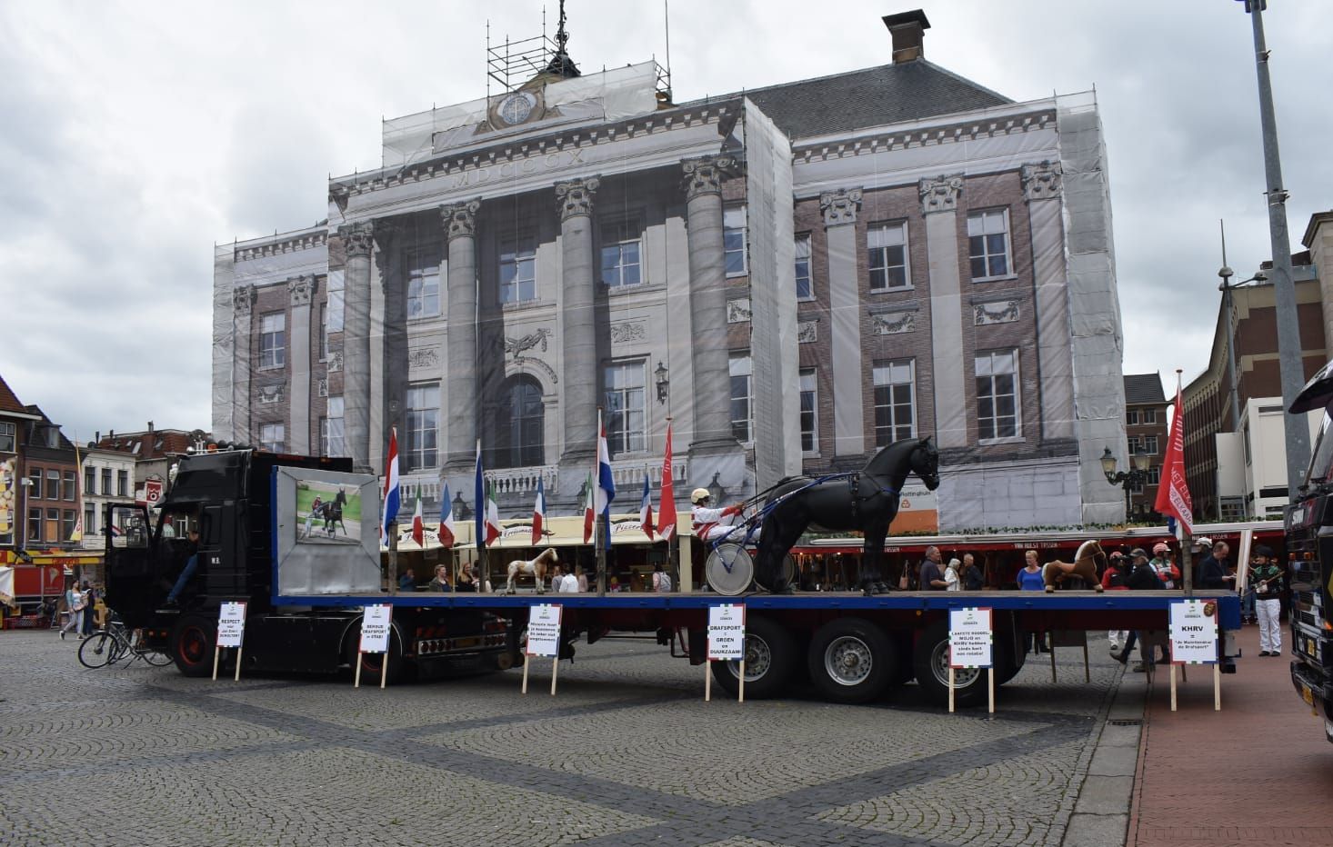 Een rijtoer met versierde platte wagens en paardentrailers trok donderdagochtend door de binnenstad van Groningen. De toer is een protestactie, om het verzet tegen het verdwijnen van de drafbaan in het Stadspark kracht bij te zetten.