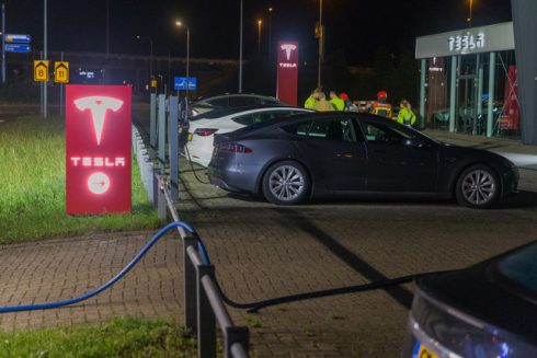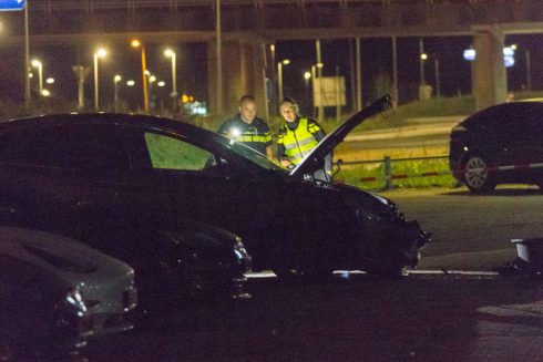 Een Tesla die geparkeerd stond aan de Rostockweg is in de nacht van zaterdag op zondag zwaar beschadigd geraakt bij een brand. Dat meldt fotograaf Rieks Oijnhausen.