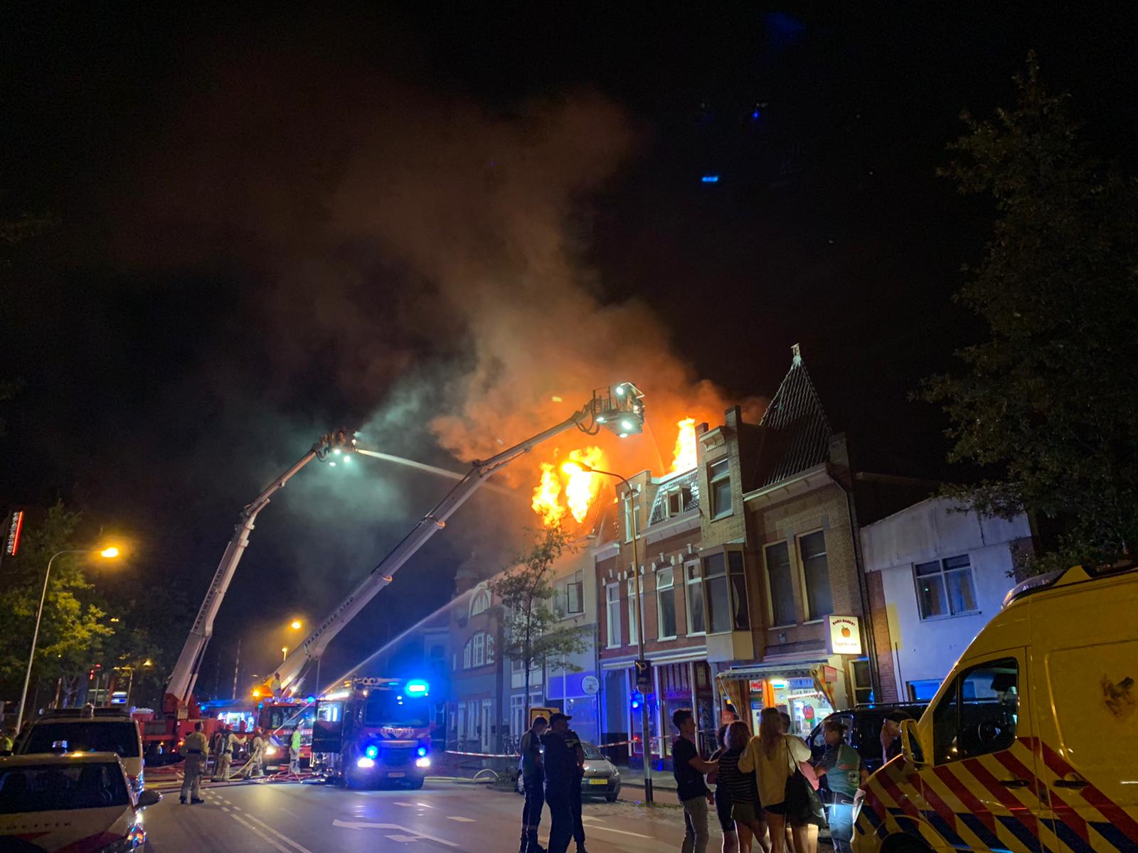 De brandweer probeert met man en macht de brand te beperken tot de bovenste verdieping van het gebouw. “We hebben inmiddels opgeschaald naar grote brand. De bemanning van de derde blusauto zal ook zorgen voor het aflossen van al ingezette collega’s”, laat een woordvoerder van de brandweer weten.