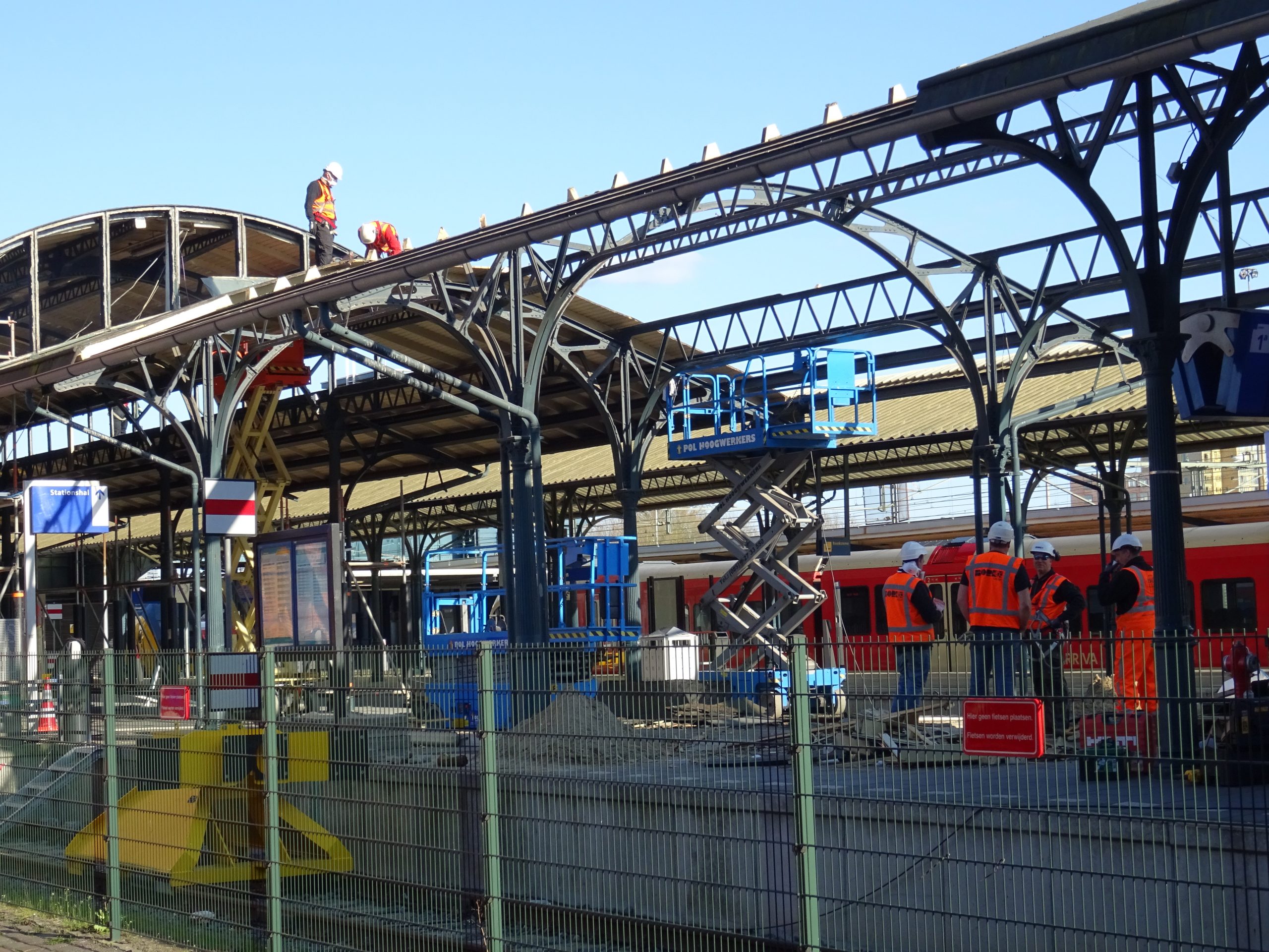 De originele monumentale perronkappen zijn vorig jaar gedemonteerd voor restauratie. De bedoeling is dat deze in 2022 weer worden teruggeplaatst.