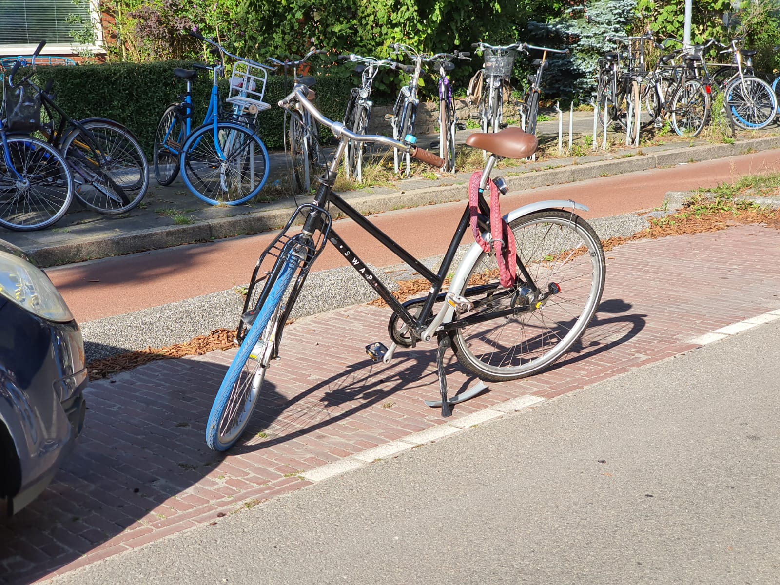 De politie heeft onderzoek gedaan naar de toedracht. De fiets raakte bij het ongeluk beschadigd.