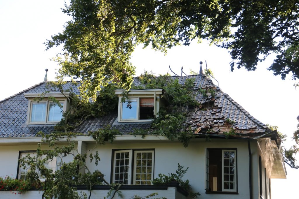 Het incident gebeurde rond 17.45 uur. Een grote tak kwam los en viel daarbij op het dak van de woning. Verschillende dakpannen kwamen naar beneden en het dak raakte beschadigd. Niemand raakte gewond. De Harense brandweer kwam ter plaatse met één tankautospuit. Brandweerlieden hebben de bewoner geassisteerd bij het opruimen en afhandelen van de schade. Het verzekeringsbedrijf is geïnformeerd door de politie.