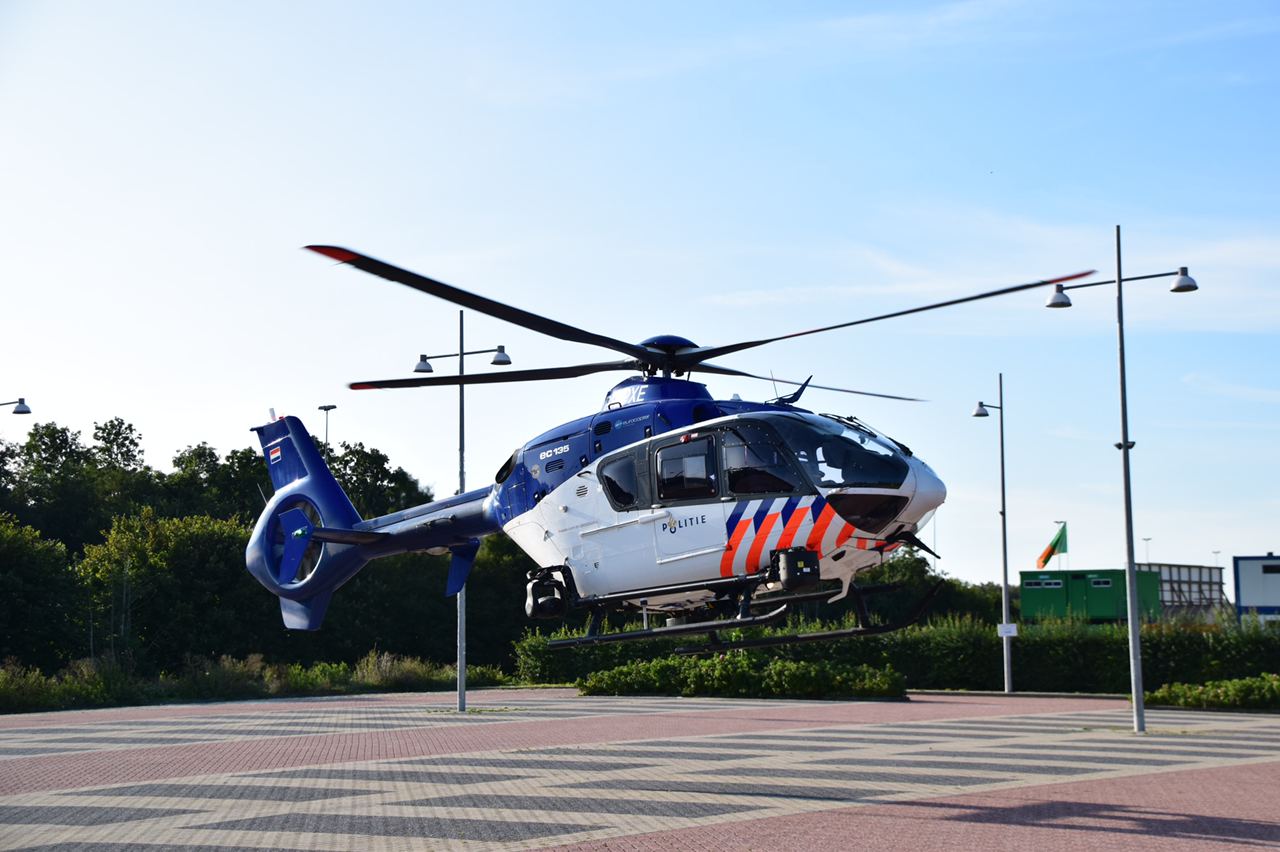 Een politiehelikopter is zaterdag aan het einde van de middag geland op het P&R-terrein in Haren. De helikopter trok flink wat bekijks.