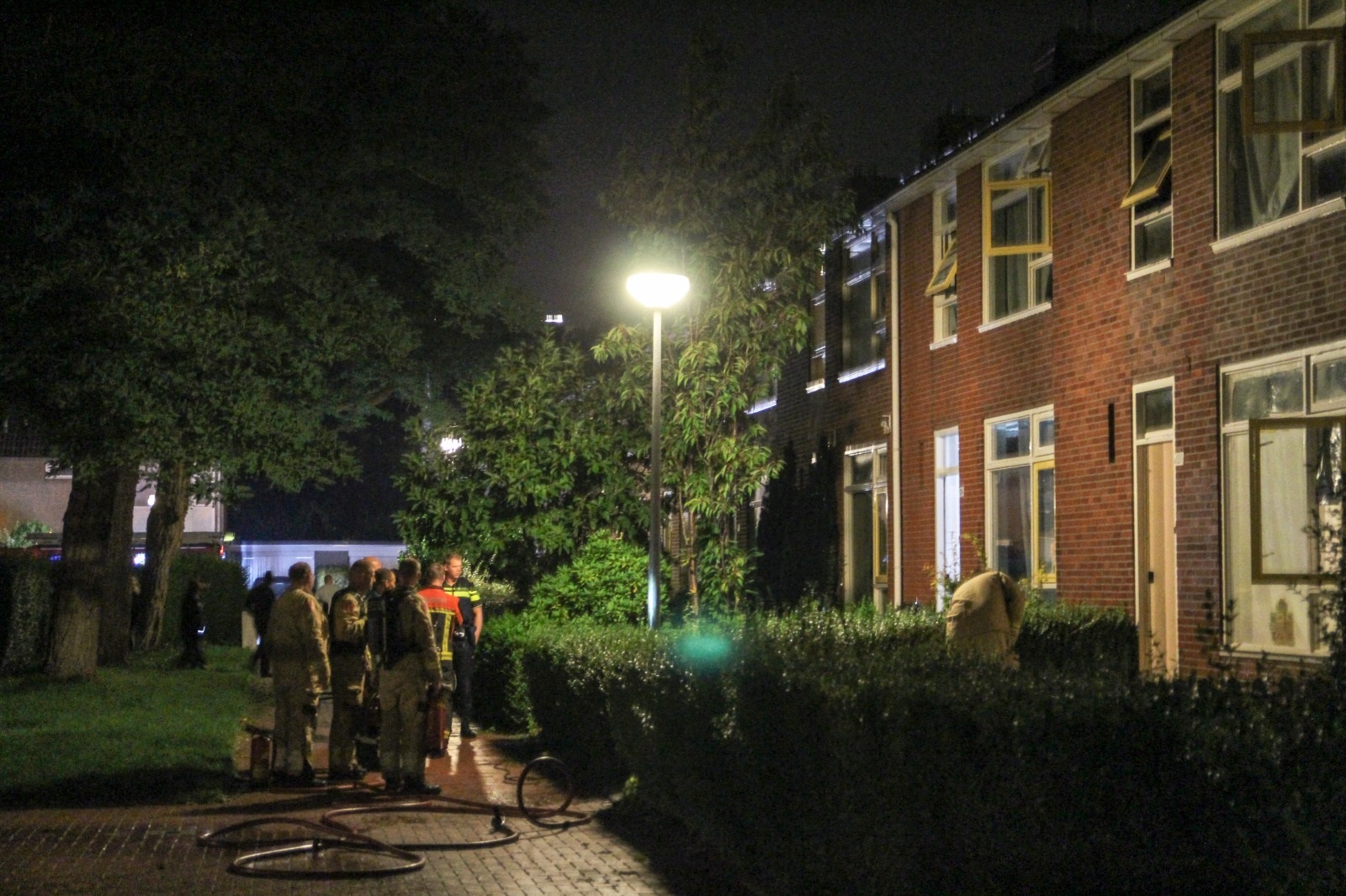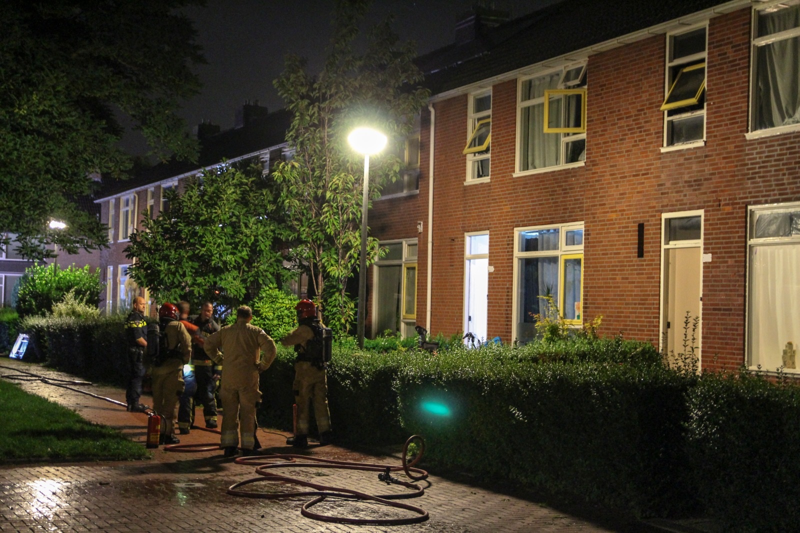 De melding van de brand kwam rond 4.15 uur bij de hulpdiensten binnen die daarop uitrukten met een tankautospuit en een hoogwerker. Ook werden meerdere politievoertuigen en een ambulance naar de straat gestuurd. “Bij aankomst bleek al snel dat er in de woning veel rook stond”, vertelt De Jager. “De brandhaard kon door middel van één straal hogedruk snel onder controle worden gebracht. Ook werden twee schuimblussers ingezet om het vuur te bestrijden.”