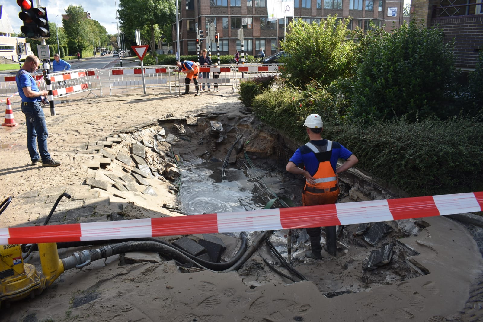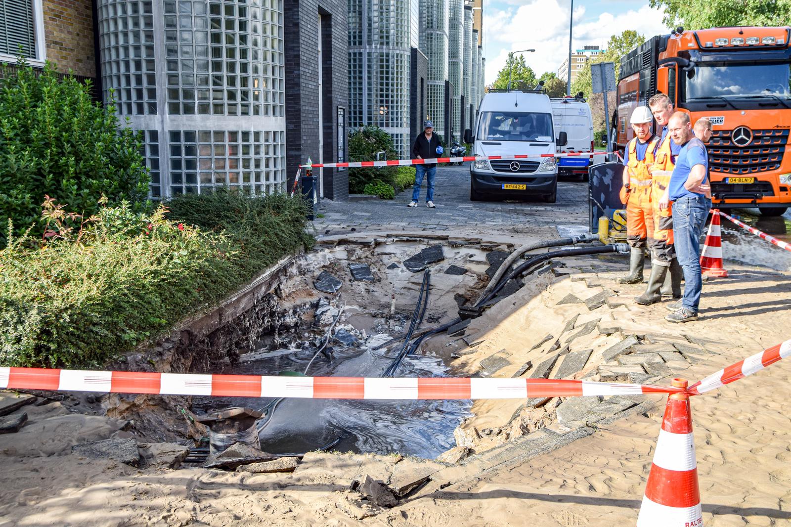Incidentfotograaf Rick ten Cate van tencatefotografie.nl meldt rond 16.10 uur dat er op de kruising flink wat water staat. “Naast een flat zit er een gat in het trottoir. Daar stroomt allemaal water uit.” Medewerkers van Handhaving hebben een fietspad op de Van Ketwichverschuurlaan afgesloten. De Van Lenneplaan is afgesloten tussen de kruising met de P.C. Hooftstraat en de Van Ketwich Verschuurlaan. “Op dit moment zijn ze met pompen het water aan het weghalen.”