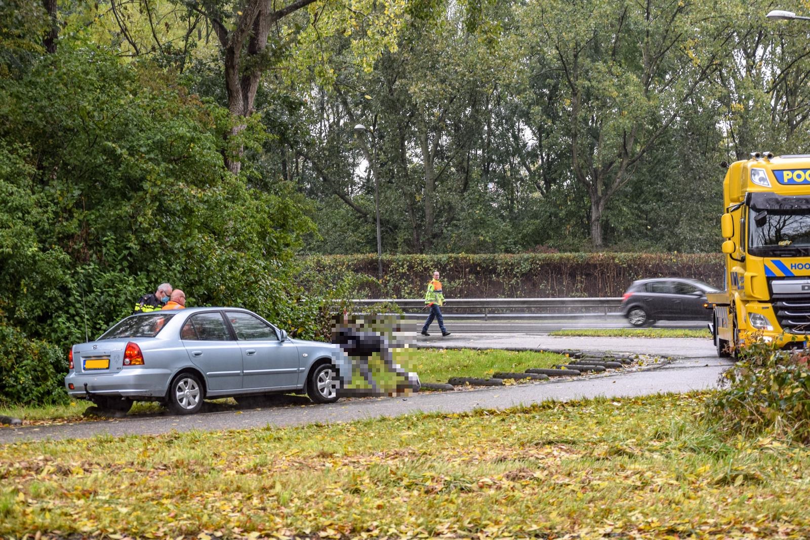 Een personenauto is woensdagmiddag door nog onbekende oorzaak van de weg geraakt op een afrit van de westelijke ringweg. Dat meldt Rick ten Cate van de incidentenwebsite tencatefotografie.nl.