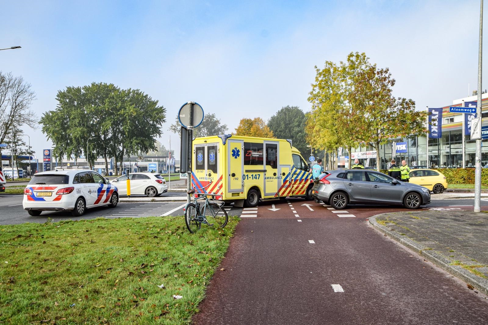 Het ongeluk gebeurde rond 10.15 uur ter hoogte van de kruising met de Atoomweg. “Hoe het precies heeft kunnen gebeuren is onbekend”, vertelt Ten Cate. “De automobilist kwam vanaf het Hoendiep en reed de Atoomweg op. Bij die manoeuvre werd een fietser over het hoofd gezien waardoor een aanrijding het gevolg was. Door de botsing kwam de fietser ten val.” Hulpdiensten waren snel ter plaatse. “De politie zette een rijstrook van de Atoomweg af. Verpleegkundigen van de ambulance hebben de fietser gecontroleerd. Deze kon ter plaatse behandeld worden en hoefde niet mee naar het ziekenhuis.”