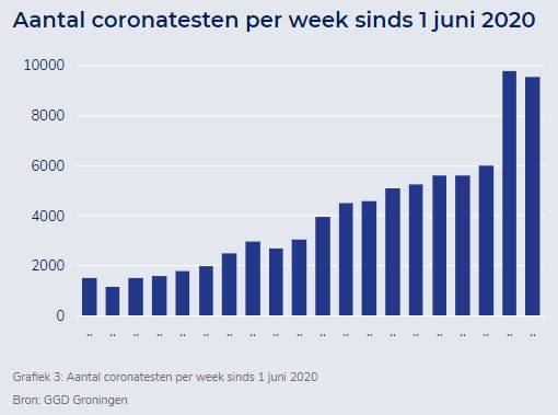 In de provincie Groningen zijn sinds vorige week dinsdag 1.161 nieuwe coronabesmettingen geconstateerd. Dat blijkt uit de wekelijkse update van GGD Groningen.