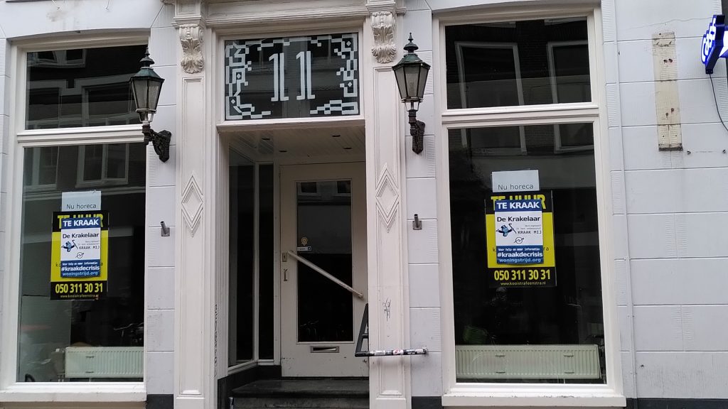 Op diverse leegstaande panden in Groningen zijn donderdagochtend door krakers posters geplakt om te protesteren tegen de leegstand. Op de posters van “De Krakelaar” staat dat de lege panden te kraken zijn.