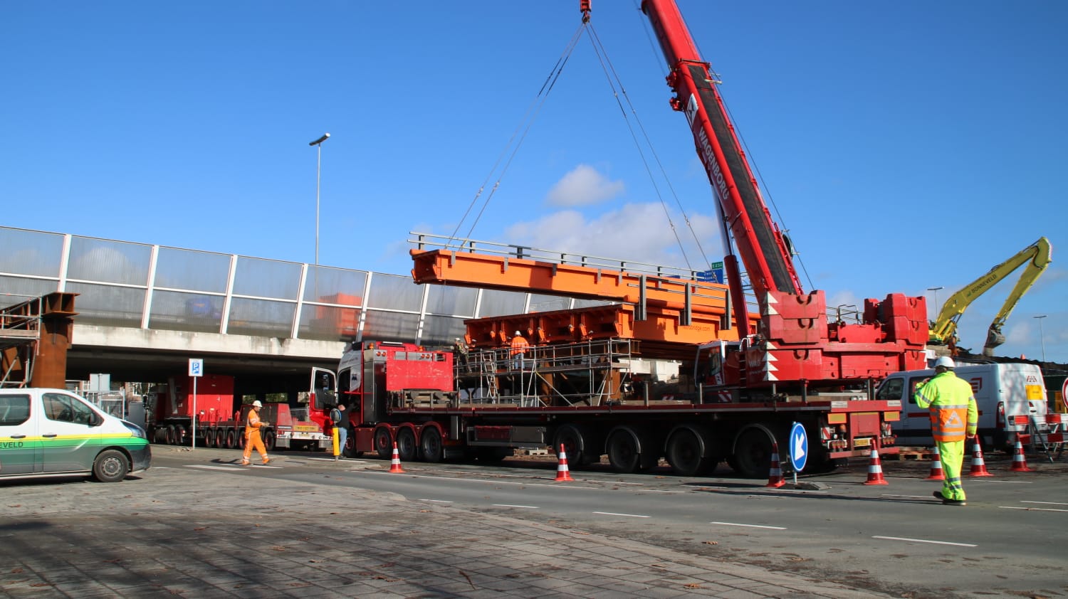 De Paterswoldseweg is in de nacht van woensdag op donderdag afgesloten voor het verkeer vanwege het plaatsen van een tijdelijk viaduct.