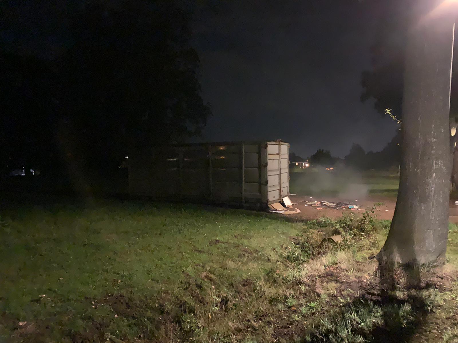 De melding van de brand kwam rond 21.30 uur binnen waarop een tankautospuit van de blusgroep Eelde ter plaatse werd gestuurd. “Het gaat om een kleine brand”, vertelt Ten Cate. “Naast de container is papier in de brand geraakt. Dit kon snel onder controle worden gebracht.” Volgens Ten Cate is de politie gelijk een onderzoek gestart. “Twee surveillancewagens zijn in de buurt op onderzoek uitgegaan. Dit gebeurde naar aanleiding van aanwijzingen van een getuige”.