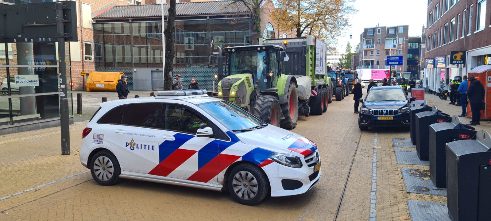 De politie heeft een groep boeren met hun trekkers tegengehouden die wilden protesteren bij het provinciehuis. “De boeren hebben ongeveer een uur in de Sint Jansstraat gestaan”, meldt Martin Nuver van 112Groningen.nl.