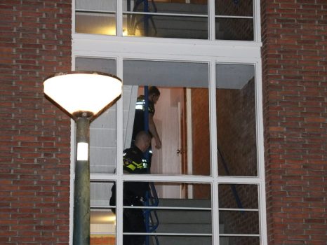 De melding van de brand kwam rond 00.25 uur bij de hulpdiensten binnen die daarop een tankautospuit en een hoogwerker ter plaatse stuurden. “Politieagenten waren als eerste ter plaatse”, vertelt Wind. “Zij gingen op onderzoek uit toen ineens de bewoner van de woning op de tweede verdieping waar de brand woedde de voordeur dichttrok. Agenten hebben daarop de deur ingetrapt.”