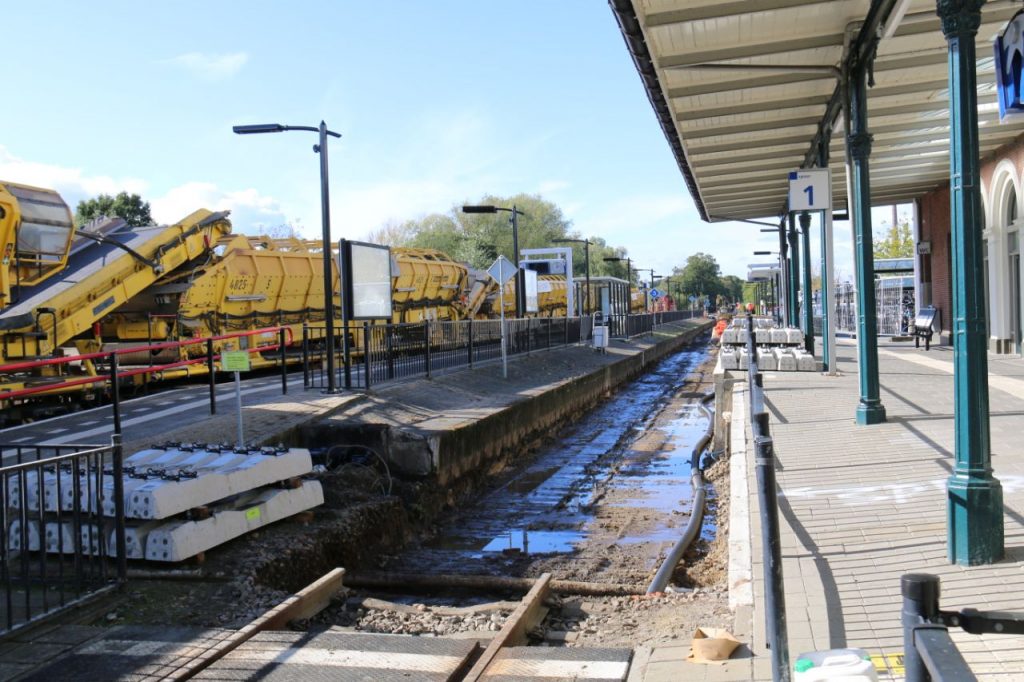 De werkzaamheden aan het spoor tussen Groningen en Winschoten zijn sinds zaterdag in volle gang. Op station Winschoten is na het passeren van de laatste trein direct begonnen met het weghalen van de sporen.