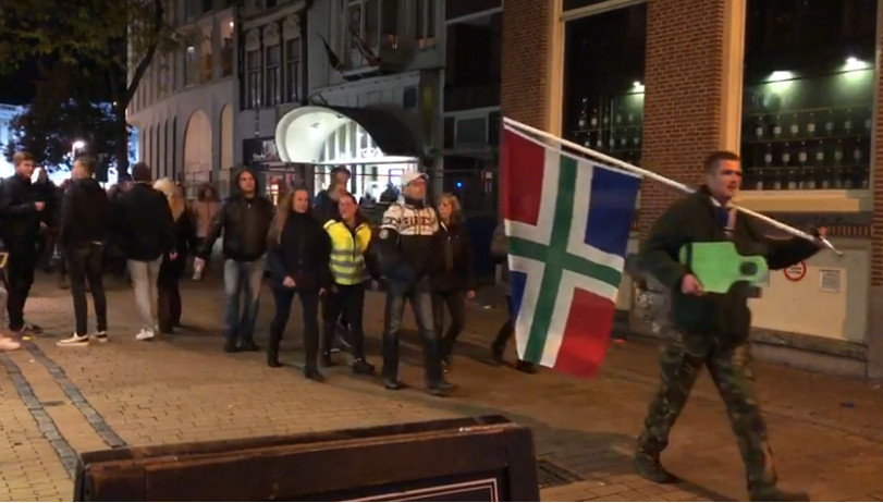 Enkele tientallen mensen demonstreerden vrijdagavond in het centrum van Groningen tegen de coronamaatregelen.