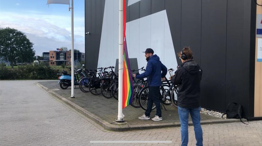 Internetsensatie Tiktok-Tammo hijst voor de diversiteitweek van het Alfa-college op meerdere locaties de regenboogvlag. Met deze week wil het Alfa-college vieren dat iedereen verschillend is en dat iedereen er mag zijn.