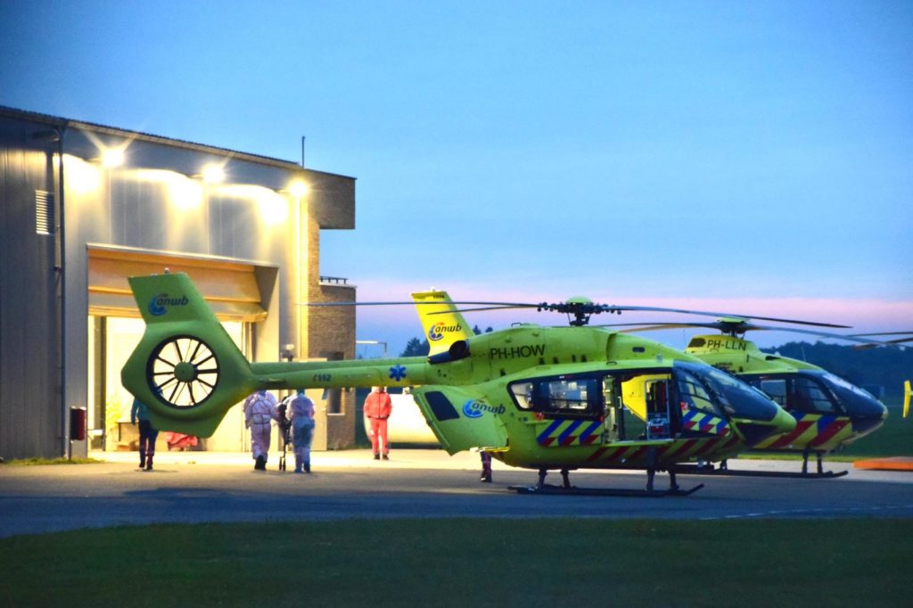 De helikopter landde rond 18.45 uur op Groningen Airport Eelde. Enige tijd daarvoor was het opgestegen vanaf het Zaans Medisch Centrum in Zaandam. Op het vliegveld stond een ambulance klaar om de patiënt verder naar Groningen te vervoeren. Verpleegkundigen van zowel de helikopter als de ambulance hadden beschermende kleding aan. Heel voorzichtig haalden zij de patiënt uit de helikopter. Nadat de ambulance, met zwaailicht en sirene ingeschakeld, richting Stad was vertrokken kon worden begonnen aan een grondige schoonmaak van de helikopter.