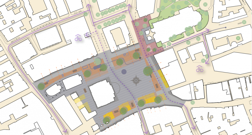 Tussen de eerder genoemde gemengde zones en de gevels komen stoepen en riepes (wandelzones). Op het plein komen, als het aan de ontwerpers ligt, een aantal beeldbepalende bomen voor schaduw en verkoeling. Ook moet er ergens water komen op het plein. Fietsverkeer tussen het noorden en zuiden kan, in tweerichtingsverkeer, zowel via de Oosterstraat en de Gelkingestraat rijden. De Rode Weeshuisstraat en het Kwinkenplein moeten, in ieder geval overdag, het alternatief worden noordzijde van de Grote Markt.