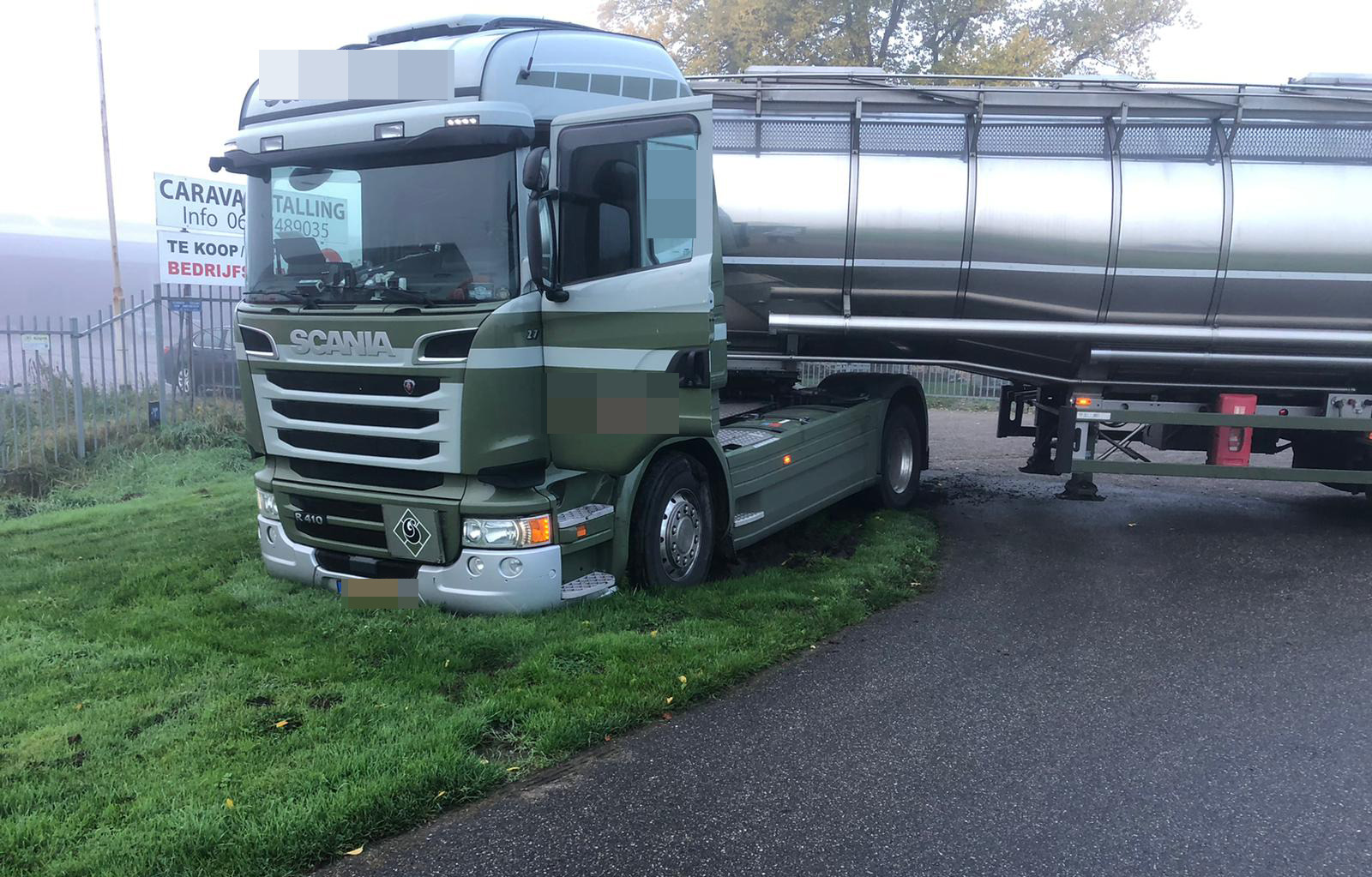 De vrachtwagen wilde keren bij de poort van Qbuzz en toen ging het mis.