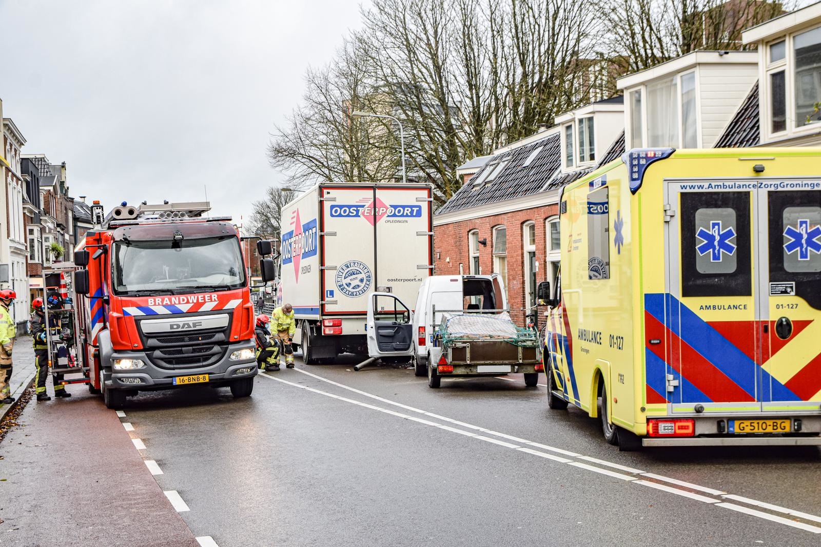 Het ongeluk gebeurde rond 11.45 uur. “Hoe het precies heeft kunnen gebeuren is onbekend”, vertelt Ten Cate. “Beide voertuigen reden in de richting van de kruising met de Paterswoldseweg toen het op een gegeven moment mis ging. Daarbij botste het busje achterop de lesvrachtwagen.” Hulpdiensten waren snel ter plaatse. “Behalve de politie en een ambulance kwam ook de Groninger brandweer ter plaatse. De bestuurder van het bestelbusje is behandeld door verpleegkundigen en is na stabilisatie met onbekende verwondingen overgebracht naar het ziekenhuis.”